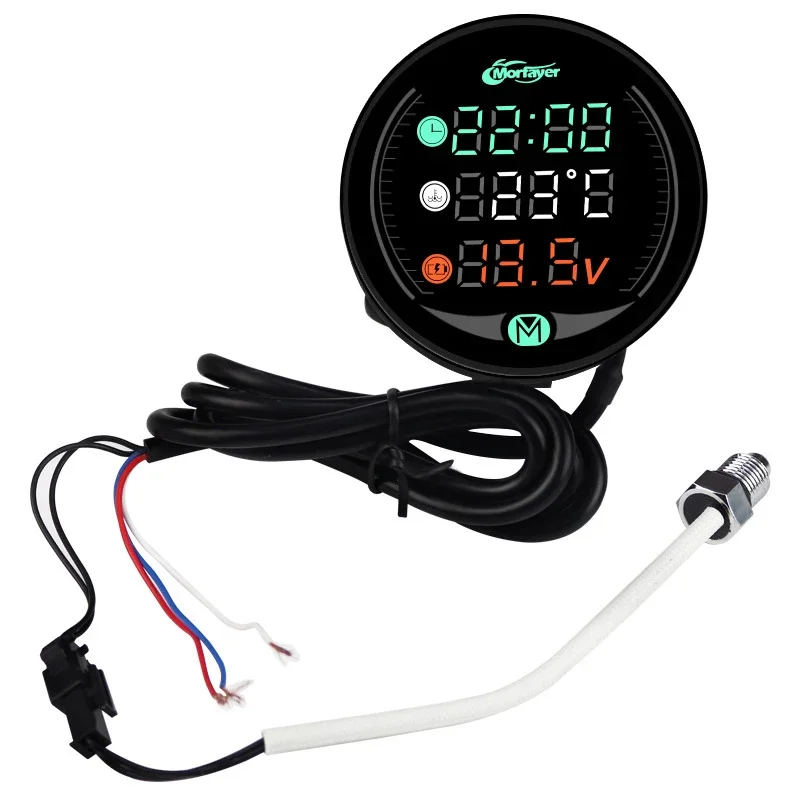 Usb Moto Thermomètre 5 En 1 Pour Moto - Rechargeable Par USB - Voltmètre LED Compteur Multifonction Moto Compteur de température d'eau pour moto 5 en 1, rechargeable Termómetro Digital para motocicleta culata de Moto temperatura voltaje... Contenu de l'emballage : 1 voltmètre. 1 température de l'., 2 vis (M6 et M8)., 1 support. Remarque : en raison de l'éclairage et des écrans, la couleur présentée sur les photos et celle du produit réel peuvent être légèrement différentes. Hauteur de l'article : 100 mm Longueur de l'article : 67 mm Utilisation : 1., Connectez le câble noir au pôle négatif de l'alimentation et laissez-le branché., 2., Connectez le câble rouge au pôle positif de l'alimentation et laissez-le brancher., 3., Connectez le câble bleu à l'interrupteur pour contrôler l'interrupteur du compteur multifonction., Couleur : noir., Matériau : ABS. Vous pouvez activer les fonctions de synchronisation et de tension avec la fonction de charge USB pour répondre à vos différents besoins. Affichage numérique LED, deuxième lecture, plus intuitif, plus et plus pratique. 9-24 V - Convient à la plupart des motos 12V moto horloge électronique LED thermomètre volt... – Grandado
