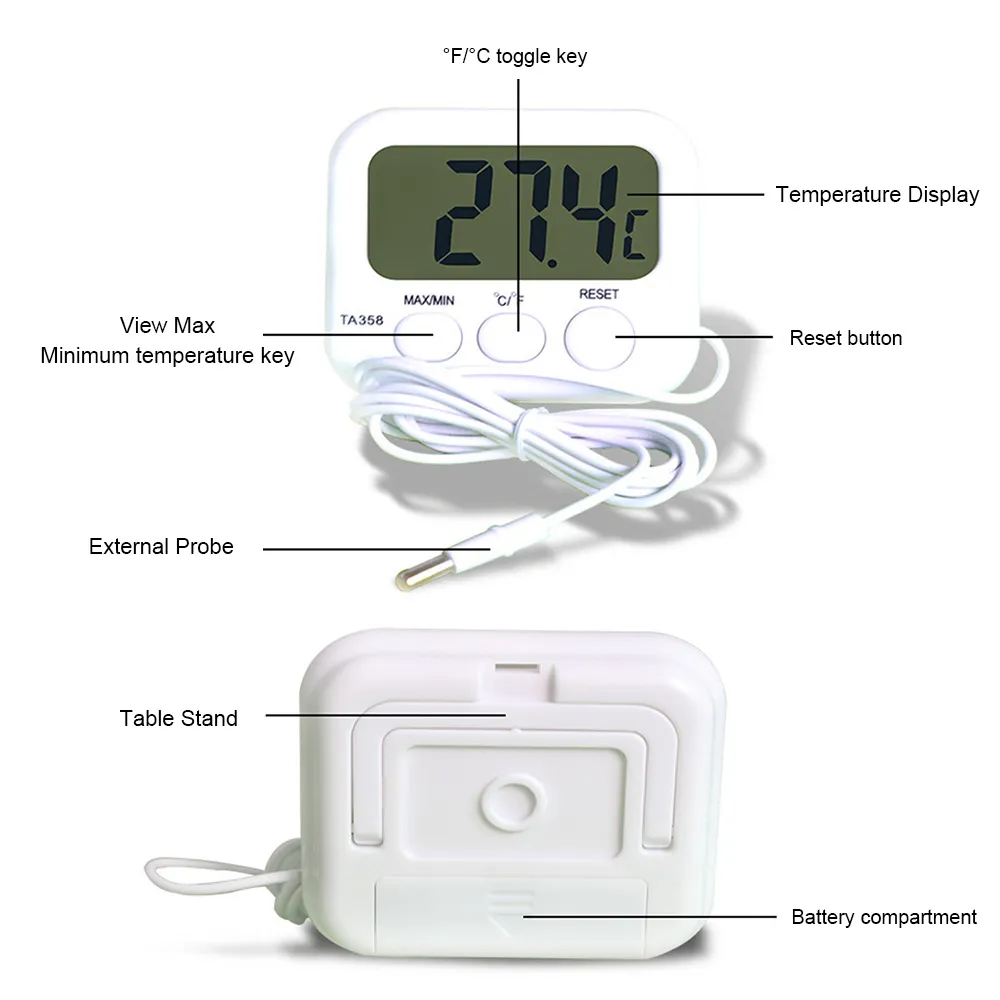 Thermomètre Numérique Sonde Thermomètre Numérique LCD, Capteur De Sonde à Mini écran LED De Haute Précision, Plage De Température De -40 °C à 70 °C, Pour Aquarium, Volaille, Reptile, Incubateur, Serre Avec Thermomètre Réfrigérateur Aquarium Sonde numérique cuisson BBQ affichage de la tempér... – Grandado Thermometre LCD Numerique Capteur De Sonde De Jauge De Temperature De Plage De 50 Celsius C A 110 Celsius C 79340501 Grande conception de police, améliore encore la commodité de la lecture, les enfants âgés peuvent lire facilement. Thermomètre numérique LCD, capteur de sonde, réfrigérateur, congélateur... L'interface d'exploitation est simple et facile à comprendre, même pour les utilisateurs débutants, vous pouvez rapidement mettre en œuvre la surveillance et la visualisation de la température. il vous fournit des données de température fiables avec une erreur minimale, vous assurant une maîtrise précise des changements de température ambiante. Écran LED noir: Équipé d'un écran LED noir, l'affichage numérique est clair et facile à lire, ce qui permet de visualiser facilement les valeurs de température, même dans des environnements moins éclairés. Mesure précise de la température: ce thermomètre numérique utilise un capteur de haute précision capable de mesurer la température rapidement et avec précision, que ce soit dans un environnement cryogénique à l'intérieur d'un réfrigérateur ou dans des scénarios tels que des incubateurs, des serres, etc.