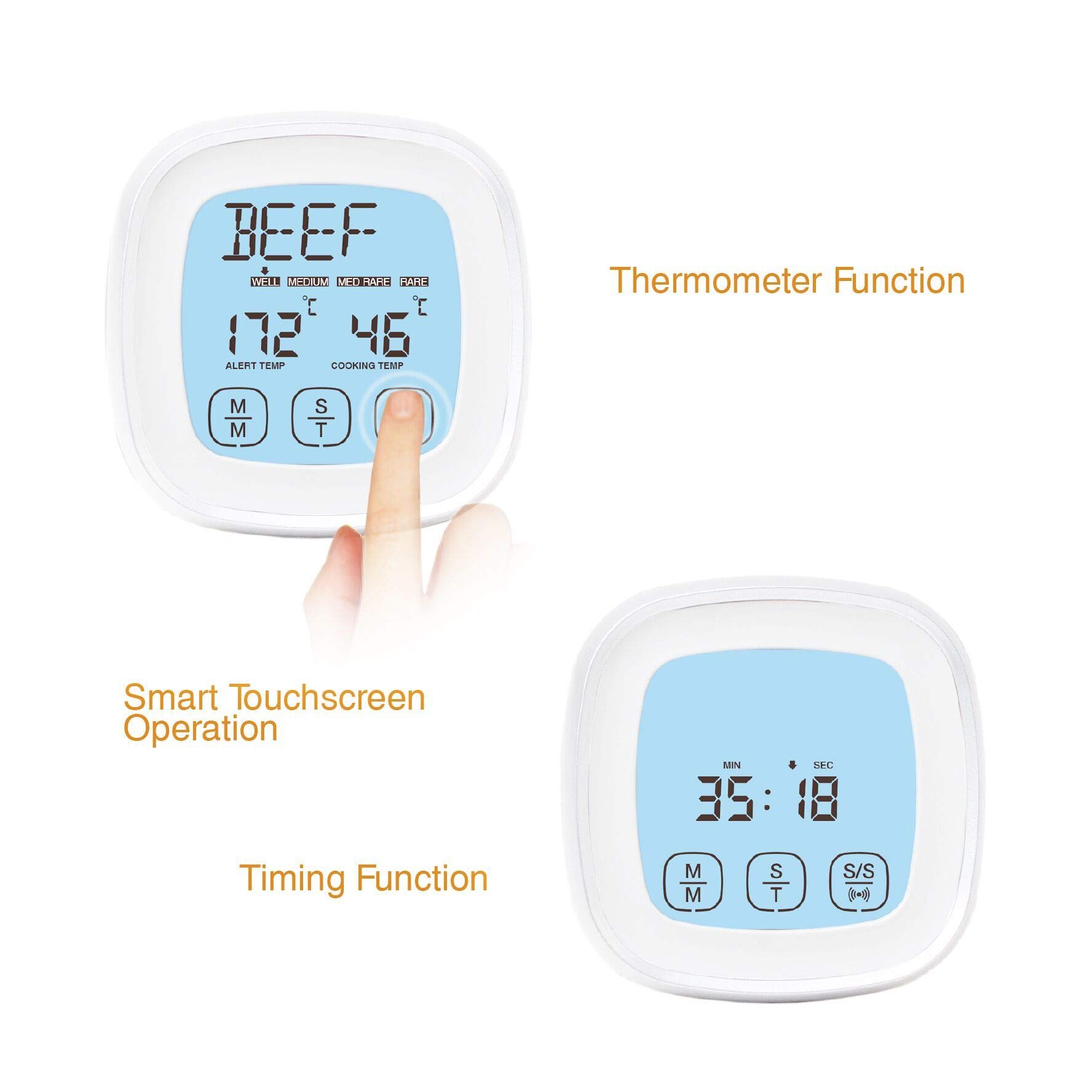 Il est doté d’écrans LCD rétro-éclairés qui facilitent l’utilisation la nuit et vous permettent d’obtenir une lecture rapide en un coup d’œil sous tous les angles. Thermomètre et minuterie précis: le thermomètre émet un bip lorsque la sonde atteint la température définie. Vous pouvez sélectionner l’effet température préféré en effleurant le bouton «S / S». La lecture instantanée, contrairement aux méthodes traditionnelles, prend un certain temps pour enregistrer les températures. DollaTek Thermomètre de cuisine Thermomètre à viande numérique Aimants puissants: Ce thermomètre à viande est livré avec deux aimants puissants et un support à l'arrière, facile à fixer au réfrigérateur, au four, au fumeur ou à poser sur la table. Écran tactile: Il est rapide, facile, sûr et amusant à utiliser. Un thermomètre à viande numérique pour la cuisson est la meilleure sonde. Plus besoin de se poser de questions et cuisinez vos plats préférés à votre goût grâce à un thermomètre à viande à lecture instantanée ! Un outil indispensable pour savourer des steaks, du poulet, du porc, de la dinde, du veau, du jambon, du poisson et bien plus encore ! Idéal pour la friture, la... Température préréglée et personnalisée: 8 types de viandes préréglées: bœuf, agneau, veau, poisson, poulet, dinde, porc et burger. Caractéristiques:- opération de l'écran tactile- Température préréglée pour une cuisson parfaite du poulet, de la dinde, du jambon, du porc et du poisson- Mode programmable pour que vous puissiez régler votre propre température- Conversion facile en degrés Fahrenheit ou Celsius- Le thermomètre / commutateur TIMER peut également être utilisé comme compte à rebours- La couverture arrière a des supports et des aimants pour une fixation facile aux meubles en fer et deboutParamètres du produit:1., Plage de mesure: -20 ° C ~ 300 °C / -4 (° F) ~ 572 (° F)2., Résolution de la température: 1 °C / 33., 8 (°F)3., Erreur de température: ± 1 ° C / ± 33., 8 (°F)4., Minuterie: 99:595., Taille de produit unique: 75x75x25MM6., Taille de l'emballage du produit unique: 190x90x30MM7., Poids de l'emballage du produit individuel: 115g8., Alimentation: 2 * AAA deux sections 7ème batterieEmballage inclus:1 x Thermomètre à viande, thermomètre à lecture instantanée Thermomètre de cuisson numérique (argent) Facile à commuter, l’affichage indique la température en degrés Celsius ou Fahrenheit. Thermomètre Avec Minuterie Sonde Cuisson Barbecue DollaTek Thermomètre Viande Numérique - Sonde Four Barbecue Minuterie Alarme Thermomètre Alerte Température Thermomètre Cuisine Numérique Sonde Écran tactile: Il est rapide, facile, sûr et amusant à utiliser. · Aimants puissants: Ce thermomètre à viande est livré avec deux aimants puissants et un support... Il indique HHH si la température est supérieure à 572 (° F).