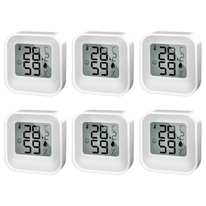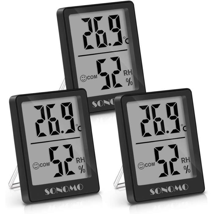En outre, l'aimant peut maintenir le thermomètre sur le réfrigérateur. Visage souriant pour un visage confortable et neutre pour le visage humide et triste pour le sec. Le thermomètre et l'humidité est seulement la taille de la paume de la main, de sorte qu'il est facile à transporter. Commencez votre vie plus saine dès aujourd'hui. Lot de 3 mini hygromètres et thermomètres, hygromètres Un bon climat intérieur augmente durablement la qualité de vie. Avec le thermo-hygromètre Sonomo, vous pouvez facilement surveiller la température et l'humidité de l'air et couper à vos besoins personnels. Ce lot de 3 thermomètres-hygromètres, c'est le must pour surveiller le confort dans toute la maison ! Parfait pour la chambre de bébé, le salon, le bureau... Haute précision,Grand écran L'affichage numérique est très clair, peut être lu de loin, adapté pour la maison, le bureau et beaucoup d'autres endroits. Petite taille, facile à transporter. Lot 3 Thermomètres Intérieur Chambre Bébé Sonomo Lot De 3 Thermomètres-hygromètres, Thermomètres Intérieurs, Thermomètres Numériques Pour L'intérieur, Salon, Chambre De Bébé, Bureau (Noir Thermomètre Intérieur Humidité Température Capteur de haute précision]Capteur de température et d'humidité intégré précis et sensible, réponse rapide toutes les 10 secondes pour fournir des mesures mises à jour et précises. Plage de mesure de la température de 0 ℃ à 70 ℃, humidité de 10 % à 99 Attention : veuillez nettoyer le produit régulièrement et ne pas l'utiliser à proximité de l'eau.