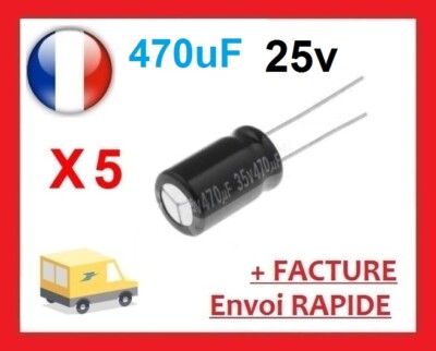 Composant électronique Tht Condensateurs Électrolytiques 470µF 25V - Lot De 5 Pièces THT 10x16mm | Pour Réparations Électroniques Condensateur électrolytique Ce condensateur axial en aluminium 105 °C série LHK de la marque RS est doté d'une conception de structure avec évent de sécurité Condensateur électrolytique 470µF Composant électronique Tht Condensateurs électrolytiques 470µF 25V Condensateur Chimique 470uf 25v Leur durée de vie estimée est de 2000 heures. Idéal pour les réparations, les projets d'électronique ou le remplacement de composants défectueux. 5x Condensateur Électrolytque 470µf 25v 85° 10x12 Vertcal Fls Radal... Leur taille compacte de 10 mm de diamètre et 16 mm de hauteur les rend faciles à intégrer dans des espaces restreints. Condensateur électrolytique : Idéal pour les applications haute température avec une plage de fonctionnement de -40 à 105°C. Fiabilité accrue : Durée de vie estimée à 2000 heures pour une performance soutenue. Grande capacité : 470 µF pour une tension de 25 V, offrant une excellente capacité de stockage d'énergie.