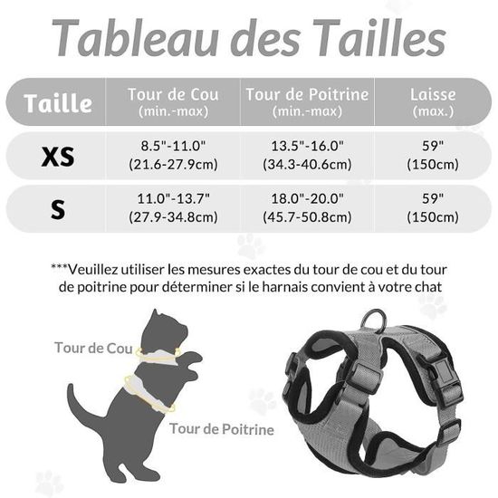 Le matériau en maille de qualité supérieure est facile à nettoyer, lavable en machine et passe au sèche-linge. La laisse robuste en nylon pour chat et le clip de laisse en métal offrent une sécurité et un confort supplémentaires, ce qui permet à votre chat d'explorer la nature en toute sécurité. Harnais Taille S Tour Poitrine 30-34 Cm Tierhood Harnais Pour Chat Avec Laisse - Anti Évasion Pour Chat Adulte Et Chaton - Liberté Contrôlée - Gris, Taille S Harnais Chat Anti évasion Harnais pour Chat avec Laisse Enrouleur, Anti-éclatement Harnais Chaton et 5m Laisse Chat Rétractables Kit, Réglable Filet Respirant Harnet pour Chaton, Chiot... Idéal pour les promenades, l'entraînement et les activités de loisirs en plein air. Veuillez consulter notre tableau des tailles avant toute commande. Contrôle anti-traction et répartition uniforme de la pression : le design du gilet de harnais pour chat répartit uniformément la pression de la laisse pour chat sur la poitrine et les épaules pour éviter la fatigue du cou et l'étouffement. Parfait pour toutes les aventures en plein air Le harnais pour chat convient également aux petits chiens comme le harnais Cela augmente la sécurité lors des promenades nocturnes. Avec un poids de seulement 80 g, il est léger et confortable pour les activités quotidiennes telles que la marche, le jogging et l'entraînement. La laisse pour chat avec harnais offre une sécurité et un contrôle supplémentaires Matériau : nylon. Longueur de la laisse : 150 cm. · Matériau en nylon de haute qualité, plus durable et plus sûr. · Réduisez la pression lorsque votre chien tire Facile à utiliser et à nettoyer : l'ensemble de harnais pour chat avec laisse est équipé de deux boucles latérales et de sangles réglables qui permettent un enfilage et un retrait faciles. L'ensemble de harnais pour chat avec laisse comprend un harnais pour chat, une laisse en nylon de 150 cm de long et une laisse télescopique automatique (5 m). Les deux boucles latérales et les sangles réglables empêchent le glissement et assurent un ajustement sûr et confortable, de sorte que votre chat est toujours protégé. Xinlon 3 Pièces Laisse Harnais Chaton Réglable, Gilet De Sécurité
