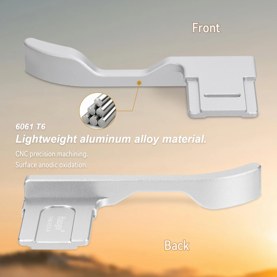 10 accessoires incontournables pour Fujifilm X-M5 - Ne les manquez pas! - Fujifilm experience Description de poignée de pouce en métal pour appareil photo Offre une prise en main sûre tout en conservant toutes les fonctionnalités normales de l'appareil photo. Améliore la prise en main de l'appareil photo pour un positionnement plus précis. Forme ergonomique pour une meilleure prise en main avec moins d'effort. Compatibilité : pour appareil photo XT5. Remarque : comprend... Poignée Métal Aluminium Kit De Cage Tilta Pour Appareil Photo Fujifilm GFX100 II Support Pouce Haoge La poignée Haoge Thumbs Up se fixe à votre appareil photo XM5 via la griffe pour amortir les vibrations et fournir un contact stable et protégé avec l'appareil photo. Aluminium aérospatial 6061T6, usinage de précision CNC, anodisation de surface., Longueur : 70 mm., Largeur : 24 mm., Poids : environ 9 g. Compatibilité : la poignée de pouce est spécialement conçue pour les appareils photo Fujifilm X-M5 XM5, offrant une prise en main complète et confortable sans obstruer les boutons ou les commandes sur le corps de l'appareil photo Caractéristiques : Cet add-on permet un contrôle très sécurisé de la caméra X M5., Vous pouvez saisir l'appareil photo en toute sécurité et le maintenir dans n'importe quelle position avec le pouce vers le haut. Compatible avec appareil photo Fujifilm XM5., Contenu de l'emballage : 1 repose-pouce noir pour appareil photo XM5., La poignée Haoge Thumbs Up se fixe à votre appareil photo XM5 via la griffe pour amortir les vibrations et fournir un contact stable et protégé avec l'appareil photo. Offre un meilleur équilibre et une meilleure prise en main pour l'appareil photo X M5., Protège les contacts électroniques. Aluminium aérospatial, usinage de précision CNC, anodisation de surface.