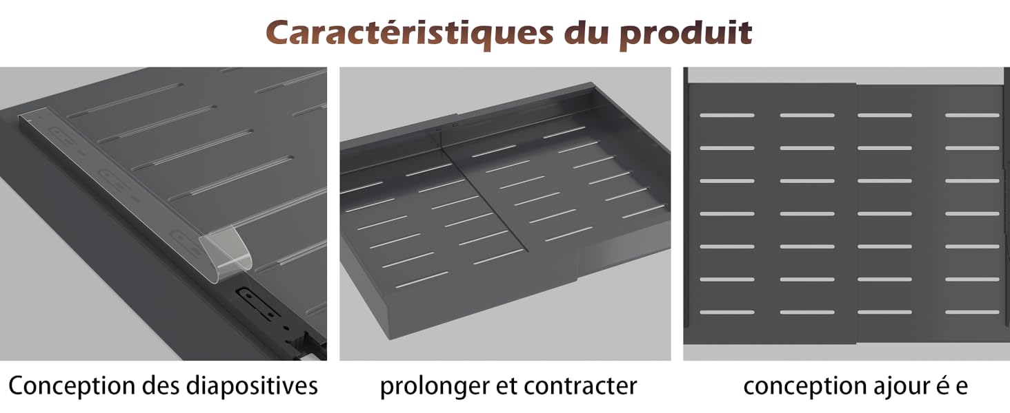 Rangement Placard Cuisine Tiroir Coulissant 15 Cm Largeur Organiseur D'armoire Coulissant De 50 Cm De Profondeur, Tiroirs Organisateur Armoire Coulissante Rangement Armoire Cuisine Noir LARGEUR RÉTRACTABLE : La largeur de notre tiroir télescopique peut être personnalisée et la largeur peut être ajustée librement de 32 à 52 cm. Vous n'avez pas à vous soucier de trouver la bonne taille de tiroir, il s'intégrera facilement dans votre placard.🛠 FACILE À INSTALLER : Notre tiroir de cuisine coulissant ne nécessite aucun perçage ni clouage. Suivez simplement les... Tiroir Coulissant Gelewuld Cuisine, Amenagement Interieur Placard Pour Rangement Cuisine Organiseur, Pas De Perçage Organisateur Cuisine Adhesif ( Noir-25cm Organiseurs De Tiroirs De Cuisine 4 tailles : la taille de ce tiroir a 4 largeurs au choix, les largeurs sont de 25,5 cm, 12 pouces, 14 pouces (35,5 cm), 16 pouces (40,5 cm). NOLUXA Paquet de 2 Tiroir Coulissant Cuisine Adhesif, Bac Coulissant... Profondeur : 40 cm x hauteur : 7,5 cm. Il suffit de suivre les instructions, de coller les tiroirs sur les armoires et de les installer en 1 minute. ✅ Matériau de qualité supérieure : nos tiroirs télescopiques sont fabriqués en acier au carbone de haute qualité avec un processus de peinture fin et unique pour rendre les tiroirs plus durables et moins sujets à la rouille. Installation rapide : notre tiroir de cuisine extensible ne nécessite pas de perçage ou de clouage.