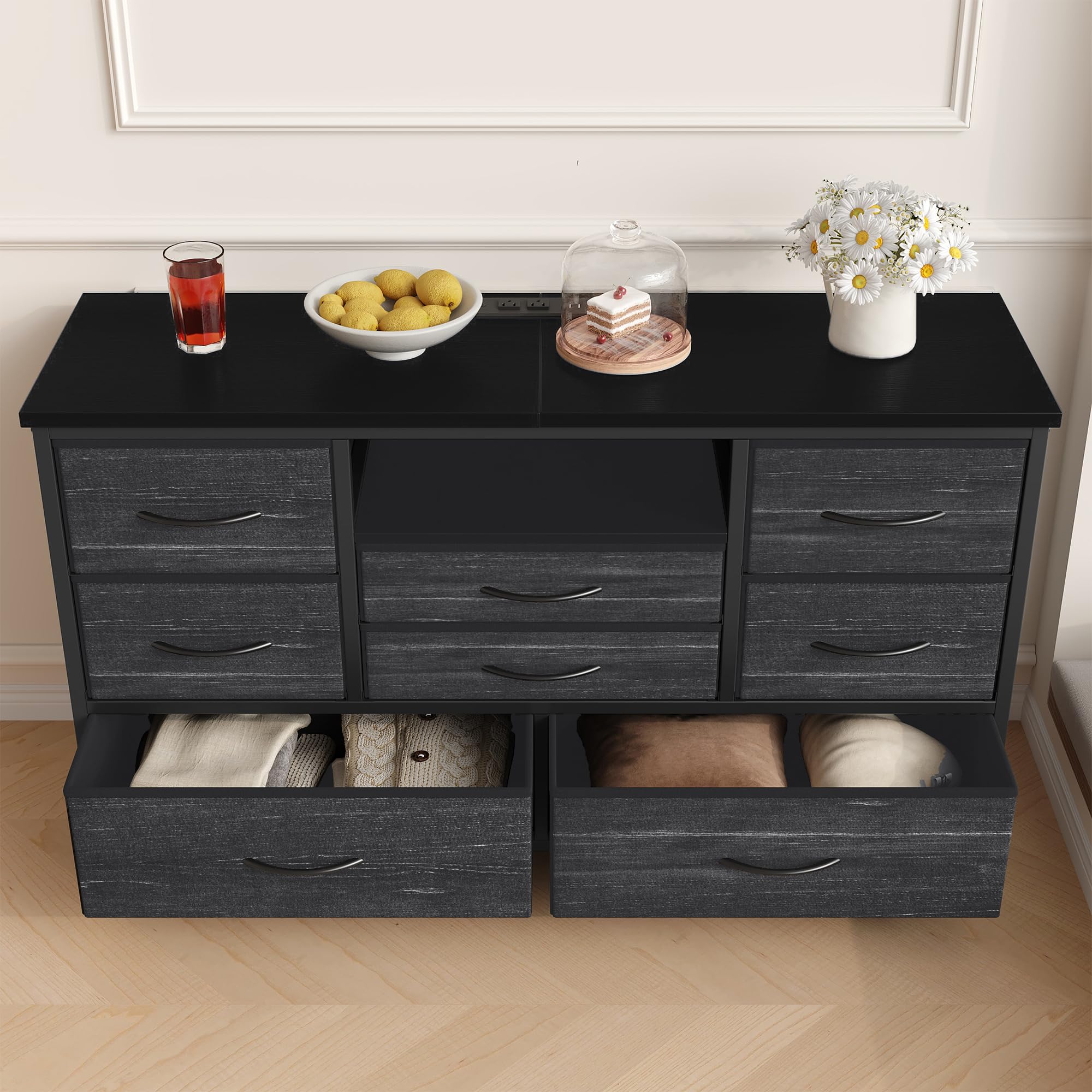 Bayou Breeze Commode De Chambre à Coucher, 6 Commodes Doubles Avec Tiroirs En Rotin Commode En Bois Pour Chambre Denfant Salon Entree Et Couloir C113256595 Solidité et Sécurité Garanties:Fabriqué en tissu résistant et plateau en bois robuste, ce meuble TV est conçu pour durer. Montage Rapide 30 Min Commode De Chambre à 10 Tiroir En Tissu, Meuble TV Avec Station De Commode 14 Tiroirs Tissu Ce meuble TV spacieux s’adapte aux écrans de 55 à 75 pouces. commode chambre a coucher Garvee Commode, 160cm Commode de Chambre à Coucher 14 Tiroirs en Tissu, Meuble TV, Téléviseur, Meuble de Rangement pour Chambre d'enfants,Chambre à Coucher... Montage Rapide et Facile - Prêt en 30 Minutes:Pas besoin de perdre des heures à monter ce meuble ! Utilisez-le dans le salon, la chambre, l’entrée ou même la chambre d’enfant. Gain de temps assuré ! Parfait pour garders votre salon ou chambre bien rangé tout en ajoutant une touche élégante à votre décoration. Son design épuré s’intègre parfaitement dans tous les intérieurs, offrant un rangement pratique et esthétique. Ses 14 tiroirs coulissants offrent un accès rapide à vos télécommandes, DVDs, vêtements, jouets et plus encore.