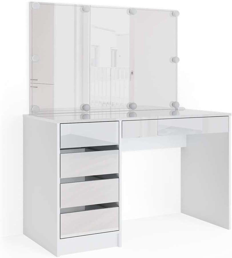 Utilisez-la comme miroir pour coiffeuse ou miroir coiffeur, cette commode coiffeuse allie esthétique et fonctionnalité. Avec son miroir de 67x100 cm, ce meuble coiffeuse avec miroir offre une grande surface pour se maquiller, tout en apportant une touche élégante à la pièce. Coiffeuse Avec Vitre Transparente GREKPOL (110x144) 5 Tiroirs Coiffeuse Avec Iroir LED (100x67) - Table Miroir Led éclairage De plus, le bureau coiffeuse avec rangement permet de garder tous les produits organisés, évitant le désordre. La coiffeuse avec tiroir permet de garder les accessoires bien organisés, tandis que son grand miroir facilite la préparation quotidienne. Ce meuble coiffeuse combine élégance et praticité, servant à la fois de bureau et de coiffeuse, maximisant ainsi l'utilisation de l'espace. Ce meuble coiffeuse optimise l'espace, permettant un rangement ordonné et pratique. Cette maquilleuse meuble avec miroir comprend cinq tiroirs spacieux, parfaits pour organiser vos cosmétiques. La coiffeuse bureau 2 en 1 est un atout essentiel pour toute chambre. Grâce au miroir LED coiffeuse, les détails sont nettement visibles, ce qui améliore l'application des produits. La table de maquillage avec miroir led s'intègre harmonieusement dans votre décor, créant une ambiance lumineuse et accueillante. La coiffeuse meuble lumière éclaire parfaitement votre espace de beauté, tandis que la coiffeuse miroir LED ajoute une touche moderne et élégante. Cette vanity coiffeuse est la pièce maîtresse de votre espace beauté, offrant à la fois style et praticité. Un atout essentiel pour allier fonctionnalité et élégance dans votre chambre. De plus, la coiffeuse avec led apporte une touche moderne et sophistiquée à votre espace. L'éclairage des LED élimine les ombres indésirables, assurant une vision claire et précise. Les façades des tiroirs sont brillantes, le dessus et les côtés sont mats. La coiffeuse est équipée d'un miroir LED sûr et pratique qui peut changer la source de lumière et la luminosité et est disponible en trois couleurs de LED différentes : lumière du jour, lumière chaude et lumière froide Cette coiffeuse tiroir est idéale pour organiser vos accessoires. Parfaite pour une coifeuse chambre, cette coiffeuse avec miroir et rangement est également un bureau de maquillage idéal. Indispensable dans la chambre des adolescentes et des femmes, la coiffeuse chambre ado est un véritable atout. Ivy Bronx Bureau De Maquillage Avec Miroir, Lumières Et Station De Charge Coiffeuse Blanche A 5 Tiroirs Commode A Del Avec 3 Modes Declairage Et Rangement Pour Armoire C111999248 Chaque élément trouve sa place, rendant la préparation quotidienne plus agréable et efficace. Dotée d’un grand miroir de 100x67 cm, cette coiffeuse KOLOR avec miroir illumine votre espace avec son éclairage LED intégré, idéal comme miroir coiffeuse led. Cette coiffeuse moderne allie fonctionnalité et style, parfaite pour ceux qui recherchent un meuble polyvalent dans leur chambre. IDOHOME 110x144 5 Tiroirs Coiffeuse avec Miroir LED (100x67) - Rangement - Table de Maquillage - Bureau Blanc Brillant - Vanity Maquillage : : Cuisine et MaisonÀ propos de cet article Les façades des tiroirs sont brillantes, le dessus et les côtés sont mats. La coiffeuse moderne de 110x144 cm est un meuble chambre idéal pour optimiser l'espace. Avec son miroir de 67x100 cm, ce... La miroir coiffeuse avec cinq tiroirs offre un excellent espace de rangement. Cette coiffeuse LED est indispensable pour un maquillage impeccable, transformant votre routine quotidienne en un véritable plaisir. Transformez votre routine quotidienne avec cette coiffeuse led avec miroir, idéale pour une coiffeuse maquillage ou makeup vanity table. Ce meuble maquillage offre un espace dédié pour se préparer, alliant esthétique et fonctionnalité.