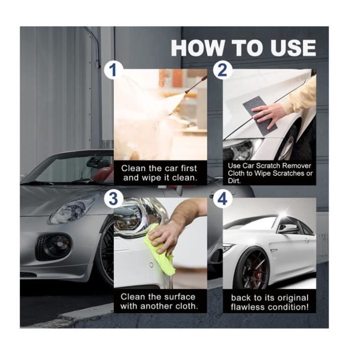 Si vous avez des questions, vous pouvez nous contacter. 🚗Réparation légère des rayures de voiture: 4 pièces de tissu de réparation de rayures de voiture peuvent éliminer les rayures légères, les taches, les rayures des ongles, les rayures des branches d'arbres et autres rayures de la voiture. 🚗Polyvalent: Convient à toutes les couleurs de voitures. Nos produits peuvent être retournés sans condition. 4Pcs Voiture Nettoyant Rayure Tissu -eraser R paration Nano Chaud Forfait comprenant: 4 * Chiffon de réparation de rayures de voiture Étant donné que la technique de tournage, la lumière ambiante, la couleur d'affichage et d'autres raisons peuvent entraîner une légère couleur des images, veuillez faire prévaloir la couleur finale en nature., Merci! Chiffon Polissage Voiture Carwash, jaune/gris - 60x60cm (aimant à eau... Utilisez le produit dans les trois jours (essayez de ne pas laver la voiture ou de mouiller l'eau), le plus longtemps sera le mieux. Remarque: En raison de la mesure manuelle, autorisez une erreur de 1 à 3 cm. Enlevez l'oxydation de la peinture, le sable, les excréments d'oiseaux et autres saletés. Chiffon Magique Voiture Rayure Voiture Réparer Tissu, 4Pcs Efface Rayures Chiffon Tissu élimination Rayures Voiture Chiffon efface rayure voiture - Achat / Vente pas cher Que votre voiture soit un grand SUV, un mini ou un camping-car, du noir, bleu, blanc au rose pour femme ou d'autres couleurs.