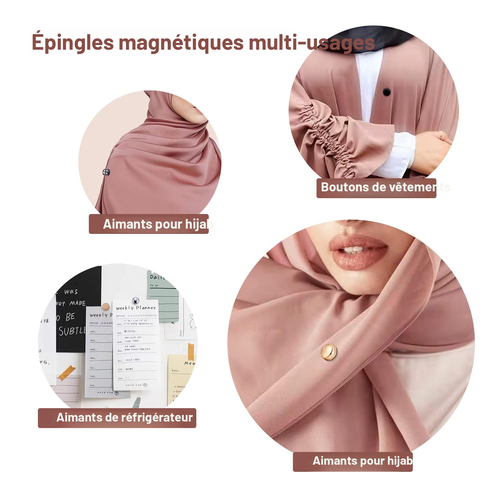 Lot de 2 épingles magnétiques pour hijab - Pour écharpe, écharpe, écharpe, vêtements, écharpes, bagues en forme de U - Pour robe de mariée, écharpe, hijab, Autre, Autres Maintien Fiable: Nos pinces magnétiques pour hijab offrent une prise sûre grâce à de puissants aimants en néodyme, même avec plusieurs couches de tissu ou de... Alternative épingles Hijab AZFUK Pinces À Tissu, Paquet De 50, Alternative Aux Épingles Pour Aintenir Les Couches De Lot 13 Paires Aimants Néodyme Fini les chiffons qui glissent ! Idéal également pour les chapeaux, les fermetures de cape ou comme porte-accessoires élégants. Aimant Vetement Lot De 2 épingles Magnétiques Pour Hijab - Pour écharpe, écharpe, écharpe, Vêtements, écharpes, Bagues En Forme De U - Pour Robe De Mariée... Pas de trous, pas de dommages aux fibres – juste une élégance sans faille. Variété à la Mode: Disponible dans des couleurs métalliques et mates tendance (or/argent/noir). Assez discret pour les contextes religieux, assez élégant pour les tenues à la mode. Convient pour un Usage quotidien: Parfait pour le travail, les loisirs ou les occasions spéciales.