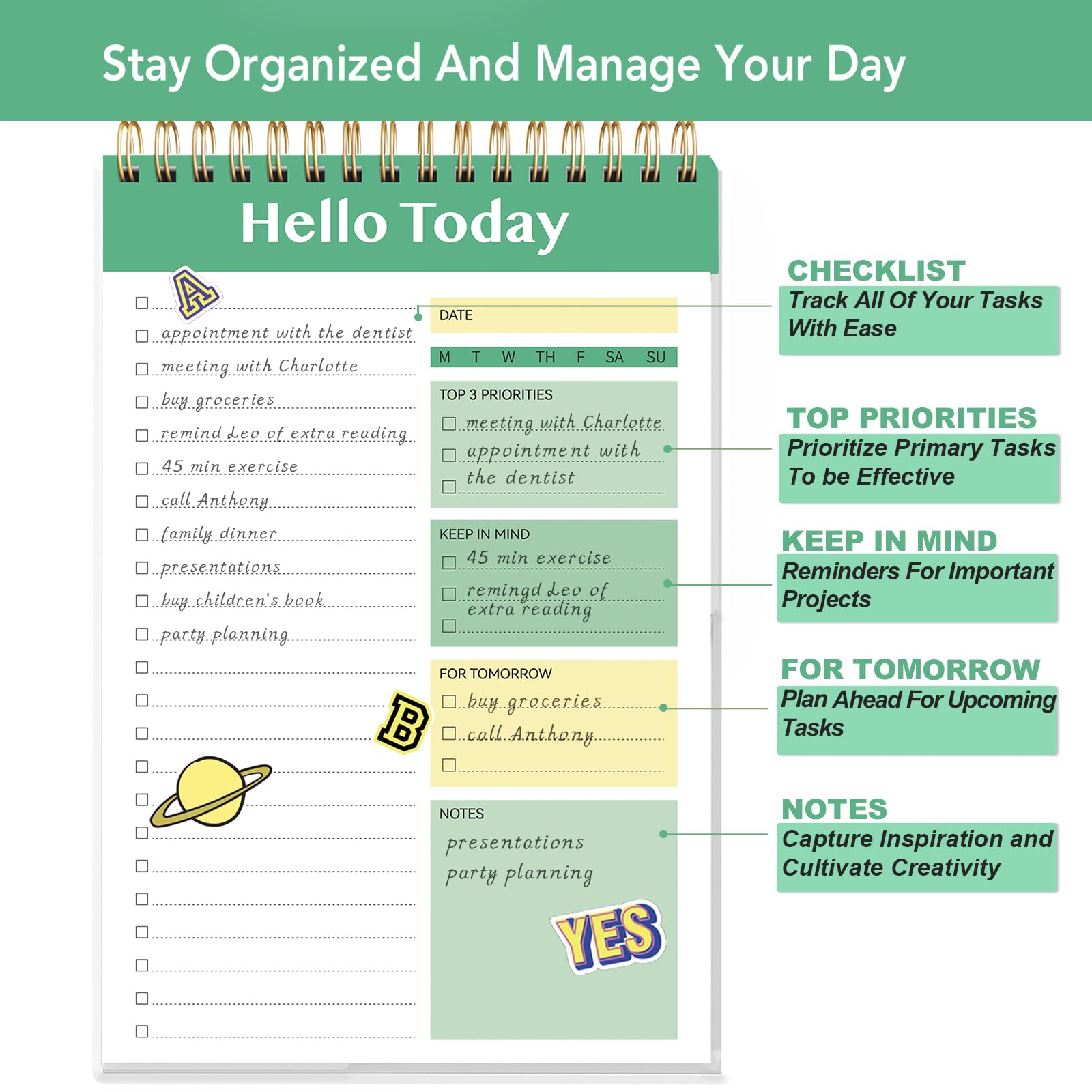 This planning notebook is undated, giving you the flexibility to start at any time and tailor it to your individual needs. Whether you're working on a long-term project or need a daily to-do list, this notepad allows you to customize your goals and efficiently set daily targets Daily Planner To Do List Pad - To Do List Notebook For Work With 52 Sheets Todo List