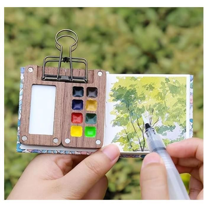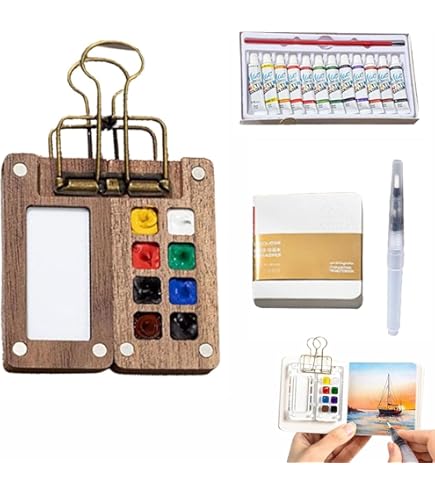 Palette Aquarelle De Poche KIT DE DESSIN Kit Aquarelle Tobios, Coffret Aquarelle Portable De Voyage - Mini Kit De Peinture Mini Aquarelle Poche Débutants Set de Peinture Aquarelle, Voyage Solide Aquarelle Peinture Pliable 33 couleurs avec 4 pièces Matériel pour l'aquarelle de voyage : test du carnet et coffret... 【Format Léger et Facile à Transporter】 Conçu pour les déplacements, ce kit aquarelle tient facilement dans un sac à dos ou un sac à main. 【Matériaux de Qualité, Conception Soignée】 La palette peinture est en noyer huilé, résistante et imperméable. Les pinceaux à eau offrent un bon contrôle et des traits fluides. FIDWALL Mini Kit Aquarelle Voyage – Palette Aquarelle de Poche avec Carnet Fleuri, 6 Pinceaux Réservoirs, Palette Bois et Pochette – Idéal pour Voyage, Peinture en Plein Air, Débutants et Cadeau Convient aux débutants comme aux artistes confirmés., Peinture non incluse. La palette aquarelle portable permet une grande liberté artistique en voyage. 【Cadeau Idéal pour les Amoureux d’Aquarelle】 Parfait pour les étudiants, les artistes amateurs ou les passionnés de croquis nomades, ce kit aquarelle voyage est un cadeau original et utile. Kit aquarelle pour enfant