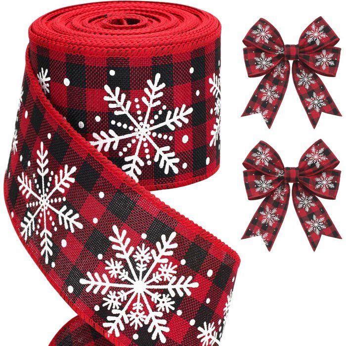 Contenu : 1 rouleau de ruban en toile de jute à carreaux de 10 m (6 cm de large) avec bords câblés. Décoration Cadeau Couronne Bricolage Lot De 3 Rouleaux De Ruban De Noël à Carreaux En Toile De Jute Avec Bords Métalliques Pour Décoration D'emballage De Noël Ruban Cadeau à Carreaux Utilisation polyvalente : que ce soit comme ruban cadeau, pour décorer les arbres de Noël, les couronnes de l'Avent ou les portes d'entrée, le ruban de jute de Noël donne à chaque objet une touche festive et affectueuse. Les fils de fer sur les bords vous permettent de créer facilement de beaux nœuds, arcs ou formes - Parfait pour des décorations détaillées Il combine le charme rustique de la toile de jute avec le style élégant des couleurs de Noël traditionnelles - Idéal pour les emballages cadeaux, les couronnes, les décorations de table ou les projets de bricolage Convient également parfaitement pour la décoration de table, les nœuds ou les idées de bricolage LAOA Lot de 3 rouleaux de rubans à bords métalliques, 30 mètres x 2 Matériel: Fabriqué en toile de jute de qualité supérieure avec bord en fil de fer, le ruban offre stabilité, durabilité et une sensation agréable au toucher. Avec ses motifs à carreaux classiques rouge-vert et ses tons de jute naturels, il s'intègre parfaitement dans n'importe quelle décoration de Noël et crée une atmosphère chaleureuse et festive Utilisation : Idéal pour l'emballage cadeau, les couronnes, la décoration de sapin de Noël, la décoration de table, la conception de couronne de l'Avent, les nœuds ou les travaux manuels. Design classique à carreaux de buffle : le motif à carreaux rouge et vert vif est un symbole distinctif de la période de Noël. Que ce soit pour les grandes boîtes cadeaux, les couronnes de bricolage ou les projets de décoration saisonniers, avec ce ruban à carreaux de 10 m, vous apportez une ambiance festive dans votre maison en un tour de main Conception de buffle classique : avec des plaids de buffle noirs et rouges brillants et éclatants imprimés, notre ruban de toile de jute est simple et classique, et la couleur ne se décolore pas facilement, convient pour correspondre à différents travaux d'artisanat Contenu de l'emballage : 2 rouleaux de ruban noir dans le colis. ... Ils sont parfaits pour emballer des cadeaux, orner des couronnes et créer des guirlandes... Toile de jute durable et indéformable. Il est facile à couper, ne s'effiloche pas et peut être utilisé plusieurs fois. Matériau de qualité supérieure et bords câblés : notre ruban à carreaux est fabriqué en toile de jute robuste, durable, indéformable et facilement malléable. Description du produit : Apportez une touche de magie de Noël rustique à votre intérieur avec notre ruban en toile de jute à carreaux de 10 m.
