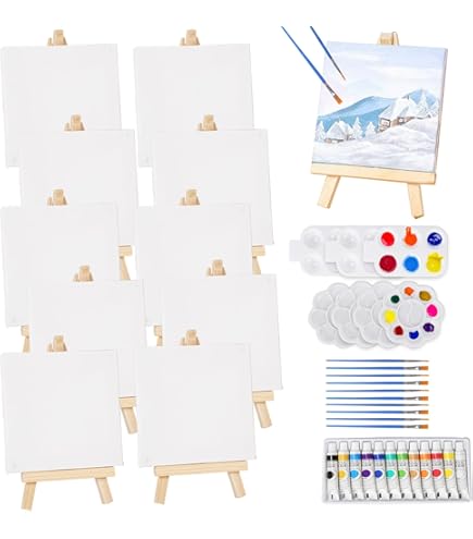 Atelier Artistique Enfant Lot De 32 Mini Toiles Et Chevalet, Comprend Une Toile De 20 Toile Mini Peinture Acrylique Lot de 32 mini toiles vierges avec support de chevalet, pour Lot De 28 Mini Toiles Et Chevalet, Toile Pré-Tendue, Mini Kit De... Caractéristiques : Matériaux : bois, coton, plastique, peinture acrylique. Couleur et taille : voir photo., Quantité : 32 pièces. Contenu de l'emballage : 5 chevalets à dessin., 5 x toiles., 4 x palette., 12 peintures acryliques., 6 pinceaux en nylon., Conseils : 1., Le chevalet est en bois, il y aura une légère odeur de bois, laissez-le dans un endroit ventilé pendant un certain temps et attendez que l'odeur se dissipe avant de l'utiliser., 2., Après avoir peint la toile, veuillez la placer dans un endroit ventilé et sec pour éviter l'humidité. Caractéristiques : 1., Le chevalet est fabriqué en bois massif, robuste et durable, pas facile à déformer, lisse et plat, structure triangulaire, bonne stabilité, angle réglable et pliable., 2., Mini toile de haute qualité, texture claire, texture délicate, facile à colorer, ne fuit pas facilement, bonne absorption de l'humidité, propre et bien rangée, pas de fissures., 3., Les peintures acryliques ont 12 couleurs, couleurs riches et durables, séchage rapide, les pinceaux sont lisses, pas de perte de poils, confortables à tenir et durables. 【Toile propre et bien rangée】: la petite toile est fabriquée en coton, avec une texture claire et délicate, facile à peindre, ne fuit pas facilement, ne se fissure pas, vous pouvez appliquer de la peinture acrylique, de la peinture à l'huile et de la peinture aquarelle directement dessus. Vous pouvez peindre avec vos enfants et profiter d'une expérience de peinture heureuse Largement utilisé : l'ensemble de toiles de peinture est adapté pour la peinture quotidienne, les cours d'art, la peinture de fête, le studio de peinture, la décoration de la maison, l'affichage des images, des cartes de visite et ainsi de suite, que vous le mettiez dans votre salon, chambre à coucher ou bureau, ces cadres peuvent parfaitement présenter vos œuvres d'art Taille et dimension de toile : Comment bien choisir