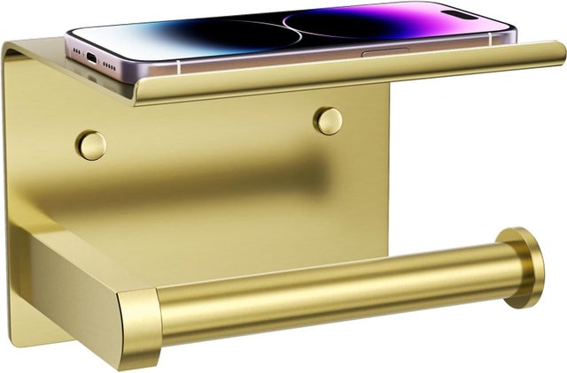 dérouleur de papier WC – Le Repère des Belettes [Grand support pour téléphone] Ce support est suffisamment grand pour accueillir divers articles, tels que des lingettes humides, du gel hydroalcoolique, des mouchoirs, des désodorisants et des produits d'aromathérapie. Porte Papier Toilette Design Moderne Support Papier Toilette Mural Avec Tablette Pour Salle De Bain, Porte Support Laiton Brossé C'est le choix idéal pour les designs modernes et anti-traces de doigts. Matériau de qualité supérieure : Acier inoxydable anticorrosion SUS 304 avec finition chromée, épaisseur 1,5 mm, porte papier toilette mural assurer durabilité... Porte Papier Toilette Mural Avec Tablette Support Papier Toilette... Son design élégant et son apparence raffinée s'harmonisent avec presque tous les équipements de salle de bains, faisant de ce porte-rouleau un ajout élégant à votre salle de bains. L'anneau arrière empêche efficacement les rouleaux de glisser. [Installation murale facile] Livré avec vis et vis d'expansion pour une fixation murale plus sûre. Sa surface brossée est résistante aux rayures et facile à nettoyer. Il est compatible avec des surfaces telles que le carrelage, le marbre et l'acier inoxydable. Porte Papier Toilette Mural avec Tablette, Support Papier Toilette Or Brossé Laiton Porte Rouleau Papier Toilette pour Salle de Bain et Toilettes