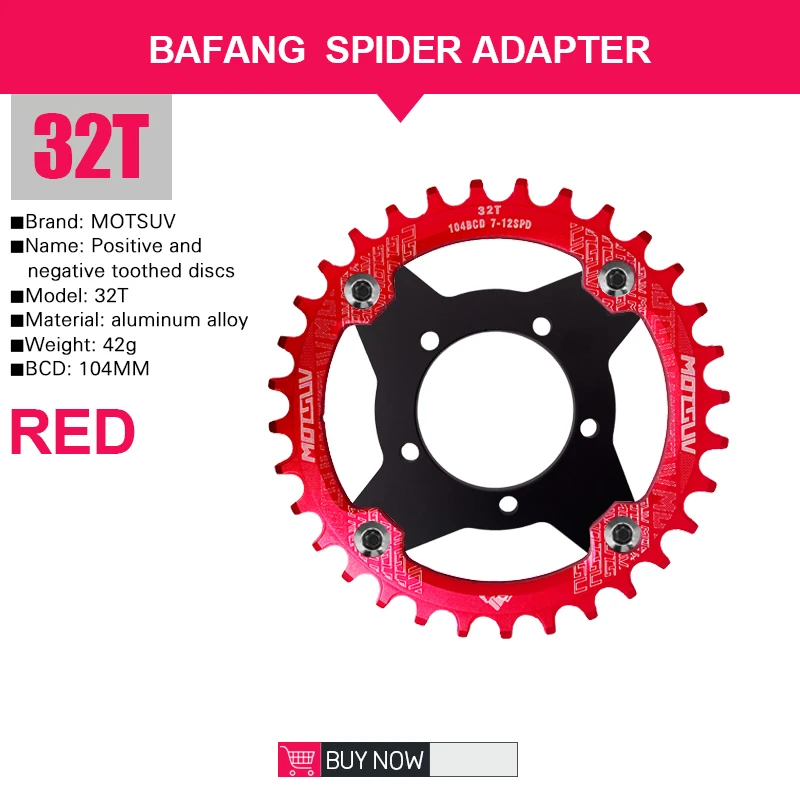 Plateau 32T Moteur Moyen Tongsheng-Adaptateur Araignée Pour Vélo électrique, Adapté Au Moteur à Entraînement Central TSDZ2, 32T, 34T, 36T, 38T Compatible Moyeu Moteur TSDZ2 CHAÎNE DE VÉLO ESNAIL 104bcd en plusieurs tailles pour différentes Tongsheng - kit de motorisation de vélo électrique, avec capteur de... Contenu de l'emballage : 1 adaptateur. Remarque : la couleur de l'article peut varier de celle de la photo en fonction de la luminosité et des paramètres d'affichage de votre ordinateur. Produit de qualité supérieure. Silriku Type : 32T., Couleur : rouge. Fabriqué en matériau de haute qualité, durable et pratique à utiliser. Gravure et fraisage CNC CNC, oxydation anodique, marquage au laser. Haute résistance à l'usure et excellente durabilité. Découpe CNC en alliage d'aluminium : le plateau 104 BCD 32T adopte une découpe CNC en alliage d'aluminium pour garantir la précision de l'utilisation du produit