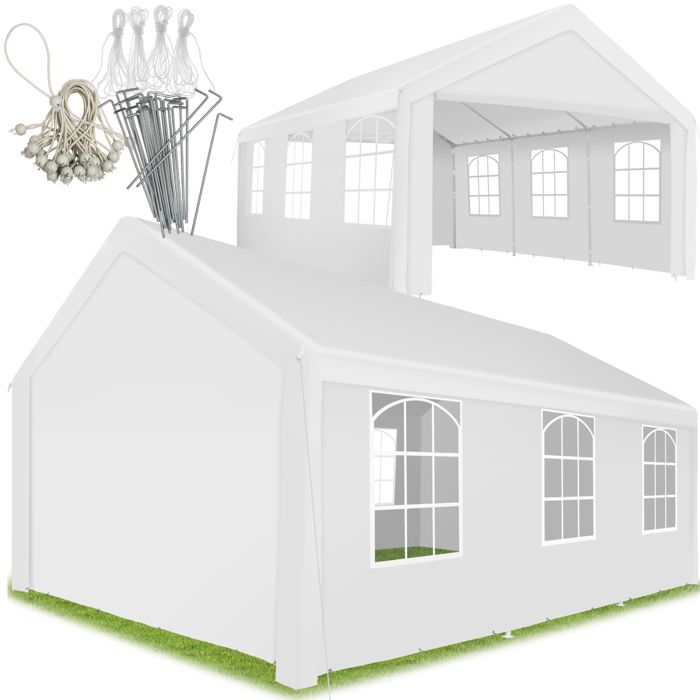 Vous avez le contrôle total sur votre espace, idéal pour des moments de calme ou des événements festifs sous votre chapiteau de jardin exterieur. 8 panneaux latéraux amovibles, 8 cordes de tension, 16 piquets, Instructions de montage Description du produit Description du produit: Le pavillon Almchalet combine des matériaux durables avec une fonction astucieuse et un design élégant – parfait pour des moments de détente en plein air. Données techniques: Dimensions totales (LxPxH) : env., 900 x 300 x 250 cm Tonnelle De Jardin Tectake® Tonnelle De Jardn Extereur Tente De Recepton 9x3m Style Tonnelle Réception événement Extérieur Matériaux : acier laqué époxy, polyéthylène, polypropylène Utilisez la tonnelle uniquement dans des zones ouvertes et bien ventilées. BÂCHE IMPERMÉABLE ET RÉSISTANTE AUX UV : Ne laissez pas la météo gâcher vos moments à l’extérieur ! Vous êtes ainsi protégé sous votre tente de réception, quelle que soit la météo, tout en profitant d’une couverture de qualité qui résiste dans le temps. tectake® Tonnelle de Jardin Barnum 3x3 m autoportée Anti-UV Tente de Avertissement de sécurité:L'utilisation de ce produit n'est pas recommandée en cas de mauvais temps. Évitez d'exposer votre tonnelle à des sources de chaleur excessives ou des flammes ouvertes pour éviter le risque d'incendie. MONTAGE RAPIDE, DÉMONTAGE FACILE : Ne perdez pas de temps avec un montage compliqué ! PANNEAUX LATÉRAUX AMOVIBLES AVEC ATTACHES AUTO-AGRIPPANTES : Adaptez votre chapiteau de reception en fonction de vos besoins grâce à ses panneaux latéraux amovibles. Que vous recherchiez une protection contre le soleil, un abri pour vos repas en extérieur ou un espace de détente supplémentaire, les tonnelles Tectake sont conçues pour répondre à vos besoins. Robustes et esthétiques, elles s’intègrent facilement à votre aménagement extérieur tectake® Tonnelle de Jardn Extereur Tente de Recepton 9x3m Style... Avertissement De Sûreté Attention : assurez-vous d'ancrer fermement la tonnelle au sol en utilisant les cordes d'ancrage et les piquets fournis pour garantir une stabilité maximale, en particulier en cas de vent. Idéal pour vos moments de détente ou de réception, il allie charme et fonctionnalité. UN PAVILLON POLYVALENT AU STYLE CHALET RUSTIQUE : Apportez une touche chaleureuse et authentique à votre jardin avec ce pavillon de jardin extérieur au style chalet. Que ce soit pour un barbecue entre amis ou un mariage en extérieur, cette tonnelle jardin s’adapte à toutes vos envies. STRUCTURE EN ACIER SOLIDE AVEC REVÊTEMENT LAQUÉ ÉPOXY : Conçu pour durer, ce chapiteau de jardin extérieur dispose d’une structure en acier solide et résistante aux intempéries, avec un revêtement laqué époxy qui le protège de la rouille et de l’usure. Ne pas utiliser la tonnelle en cas de conditions météorologiques défavorables ou en présence de foudre.
