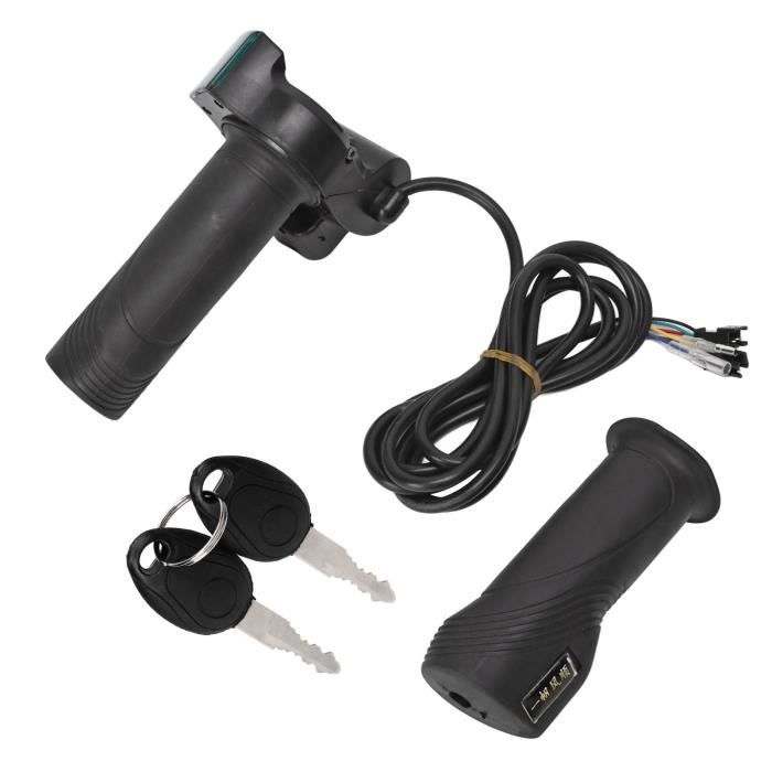 Véhicules électriques 48 V, la tension la plus élevée est d'environ 54,6 V ou 58,8 V, la plus basse est d'environ 39 V ou un peu plus élevée. Poignée d'accélérateur - 60V - Kit contrôleur sans balais - Indicateur... Large compatibilité : ne distingue pas tous les types de véhicules électriques, véhicules électriques universels 12 V-99 V. Diamètre du guidon : environ 2,3 cm., Contenu : 1 demi-guidon droit., 1 guidon gauche complet. Poignée Vélo électrique Avec Régulateur Accessoire Vélo électrique Poignée Accélérateur Demi-Tour Vélo Électrique - Compatible 12V-72V - Étanche - Montage Facile Poignée Vélo électrique Poignée Hall Linéaire VAE Fonction d'identification automatique : batterie au lithium, batterie à eau et batterie sèche ne sont pas distinguées, ce qui peut être identifié automatiquement, et le diamètre du guidon est de 2,3 cm. Type d'article : poignée fendue pour vélo électrique., Poids : environ 296 g. Voitures électriques 72 V, la tension la plus élevée est d'environ 84 V ou un peu plus élevée, la plus basse est d'environ 60 V. Méthode de câblage couramment utilisée : la ligne verte est la ligne de signal de hall de changement de vitesse, la ligne rouge est positive 5 V, la ligne noire est le pôle négatif, veuillez vous assurer de comparer le câblage de fonction du contrôleur, pas simplement connecter le câblage du contrôleur selon la couleur, une fois la mauvaise connexion causera des dommages au contrôleur ou à la poignée. Fil à 5 conducteurs : le fil bleu est connecté au fil de sortie de la serrure de porte électrique du contrôleur, le fil jaune est connecté au pôle positif du fil d'entrée de la serrure de porte électrique du contrôleur, et l'interrupteur d'alimentation contrôle l'alimentation du véhicule. Affichage de la quantité électrique : la batterie au lithium et la tension ne sont pas distinguées, et peuvent être identifiées automatiquement (12 V, 24 V, 36 V, 48 V, 60 V, 72 V véhicules électriques peuvent être directement utilisés, une partie des véhicules électriques 84 V peut également être utilisée). Paramètres de base : (selon les différents matériaux de batterie, nouveaux et anciens, différents lots, la tension sera différente, veuillez tester plusieurs fois, vous pouvez obtenir vos propres paramètres de batterie de véhicule électrique) Voiture électrique 12 V, la tension la plus élevée est d'environ 12,6 V ou un peu plus élevée, la plus basse est d'environ 9 V ou un peu plus élevée. Poignée D'Accélérateur pour Vélo Électrique, Poignée D'Accélérateur Rotative pour Vélo Électrique, Scooter, avec Écran LCD et Verrouillage à Clé 48 V Matériau du produit : plastique, caoutchouc. Matériau de fabrication : fabriqué en plastique et caoutchouc de haute qualité, il est solide et durable, ce qui prolonge sans aucun doute sa durée de vie. Poignée d'accélérateur de vélo de montagne GAROSA - Accessoire