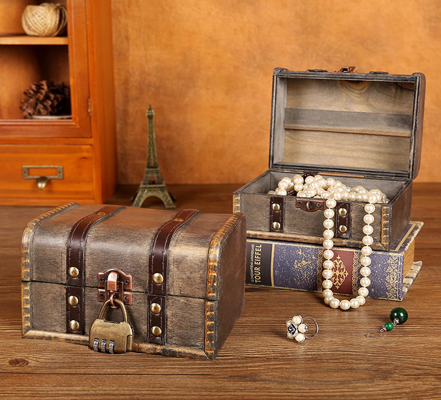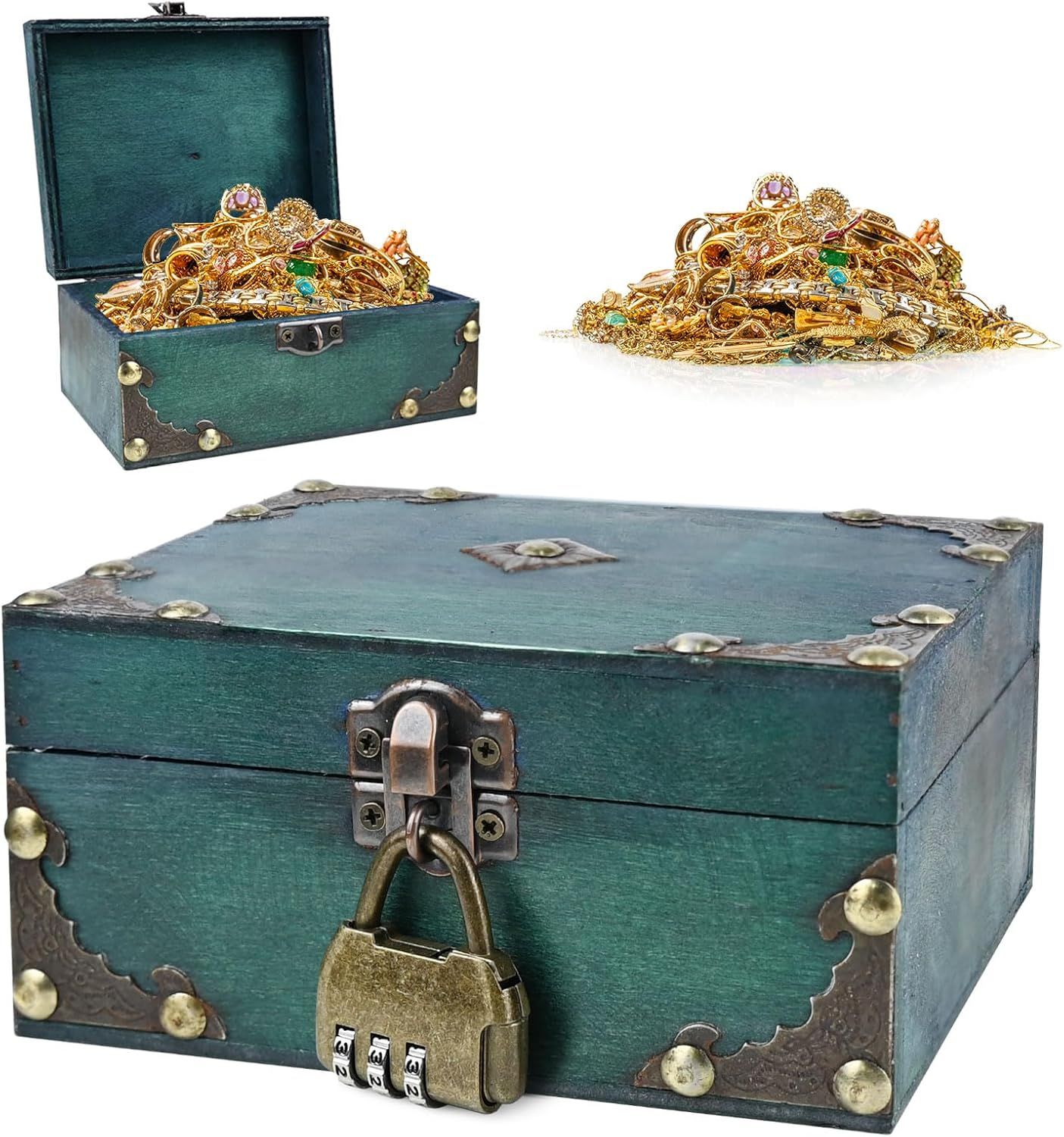 Urne Anniversaire HAOBIN Coffre Bois Coffre Au Tresor Boite Bois Boite Avec Cadenas Malle Rangement Caisse En Bois Coffre Au TréSor En Bois RéTro Avec Serrure,Coffret Chapeau Pirate Coffre Au Trésor Boîte Eois Coffre Au Trésor Boîte Pirate Avec Serrure... Coffre Trésor Bois Serrure à Combinaison Petite Boite En Bois De Rangement Avec Couvercle, Coffre Trésor Pirate Vintage Avec Cadenas, Boîte Pour Bijoux Maison, 15 X 12 X 7,5 Cm Boîte Bijoux Serrure Combinaison Nom du produit : Coffre au Trésor en Bois Vintage Matériau : Bois + cuir artificiel + alliage Poids de l'emballage : 400 g Taille du produit : 19*12*12., 7 cm/7., 48*4., 72*5 in Contenu de l'emballage : coffret à trésors en bois, manuel d'utilisation Conseils 1., Les dimensions et le poids des produits sont mesurés manuellement, et il peut y avoir de légères différences entre les différentes méthodes de mesure ou les outils de mesure. Boîte à Trésors Multifonctionnelle : Notre boîte à trésors peut non seulement être utilisée comme boîte de rangement, boîte à bijoux, boîte à argent, boîte à cadeaux et accessoires décoratifs, etc. Spécifications : Matériau : bois Taille : 15*12*7.2cm Couleur : Vert Contenu de la livraison 1 * boîte à bijoux vintage avec serrure à combinaison Volumoon... Le mot de passe initial de la serrure à combinaison est 000, si vous avez besoin de changer le mot de passe, lorsque vous ouvrez la serrure à combinaison, veuillez utiliser l'outil pour insérer le trou du mot de passe d'environ 2 mm (continuez cette action jusqu'à ce que vous ayez fini de définir le mot de passe), puis tournez la roue numérique pour l'ajuster au nouveau mot de passe que vous voulez définir (le nombre à trois chiffres doit être aligné avec la ligne de référence du mot de passe) 3., La boîte à trésors en bois peut non seulement être utilisée comme boîte de rangement, boîte à bijoux, boîte à argent, boîte à cadeaux et accessoires décoratifs, etc, mais aussi pour ranger des bijoux, des bracelets, des boucles d'oreilles, des colliers, des broches, des barrettes, etc Serrure à Combinaison : la boîte à trésor est équipée d'une serrure à combinaison en alliage, le mot de passe initial de la serrure à combinaison est 000, si vous devez changer le mot de passe, veuillez utiliser un outil pour insérer le mot de passe dans le trou rond d'environ 2 mm lorsque vous ouvrez la serrure, puis tournez la roue numérique pour l'ajuster au nouveau mot de passe que vous souhaitez configurer Conseils: Si vous avez des questions sur nos produits ou si vous recevez un produit défectueux, veuillez communiquer avec nous, nous vous répondrons dans les 24 heures Boîte à Trésors Vintage: la boîte à trésors est fabriquée à la main, avec un motif tissé et un design de serrure vintage, à la fois belle et pratique, elle peut être utilisée non seulement pour ranger des objets, mais aussi pour décorer le bureau
