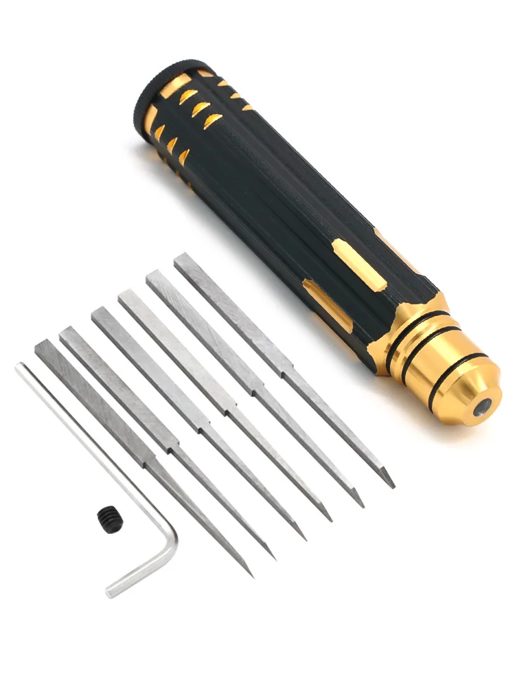 Caractéristiques : Acier inoxydable. Remarque : Les mesures étant prises à la main, les tailles indiquées peuvent varier de 1 mm. Les ciseaux à modèles adoptent un métal avec une dureté élevée et une résistance à l'usure, solides et résistants à l'usure, pas faciles à casser, ce qui offre une coupe droite et une excellente netteté Outil de découpe largement utilisé pour les kits métalliques, les voitures et les avions, la coupe des plantes et la coupe de fil. Règle de calibre de ligne, traceur de ligne centrale portable pratique, 45/90 degrés Compact Longueur du manche : environ 9 cm. Vous recevrez 7 couteaux, 1 clé, 1 poignée, 2 accessoires. Elle permet de dessiner des lignes claires et nettes, facilitant ainsi la réalisation de coupes et d'alignements précis. Voir plus... Facile à changer par vous-même, et suffisamment de couteaux pour répondre à vos différents besoins de travail Poignée ergonomique avec texture antidérapante, ce qui le rend confortable à tenir, facile à contrôler, transmission forcée, et empêche le glissement de vos mains. Vous pouvez choisir le bon pour terminer votre projet Burins Modélisme Traceur De Modèle Principal Avec Lame En Résine Sculptée, Outil De Coupe De Passe-temps, Burin 7 De Remplacement, Pour Réparation De Modèle RC, Bricolage Burins Main Poignée Ergonomique VEVOR Plotter de Decoupe Vinyle Traceur de Coupe 720 mm avec Logiciel SignMaster, Machine de... Outil de découpe largement utilisé pour les kits métalliques, les voitures et les avions, la coupe des plantes et la coupe de fils