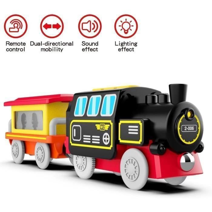 Grâce aux trois boutons situés sur le dessus, l'utilisation est simple et intuitive. Les enfants apprennent rapidement à faire avancer, reculer et arrêter le train, qui émet des sons réalistes en mouvement et à l'arrêt. 🚄Ce train électrique est équipé de phares fonctionnels et d'effets sonores réalistes, pour des aventures ferroviaires encore plus palpitantes. La figurine du conducteur incluse permet aux enfants de vivre des jeux interactifs et amusants. Pour toute question concernant notre train électrique, n'hésitez pas à nous contacter. Avec les effets sonores de la locomotive, ils s'amuseront pendant des heures. 🌈Spécifications: ✨️Nom du produit: Train electrique enfant ✨️Matériau: ABS ✨️Couleur: Blanc ✨️Alimentation du train: 2 piles AA 1,5 V (non incluses) ✨️Alimentation de la télécommande: 2 piles AA 1,5 V (non incluses) ✨️Compatibilité: Compatible avec toutes les grandes marques de circuits en bois (ex. 🚄Ce circuit de train à piles comprend une locomotive, un wagon supplémentaire et une peluche. Idéal pour votre collection BRIO World, la locomotive rechargeable avance, recule et éclaire les rails, grâce au bouton rouge placé au dessus de la locomotive 🛡️【Sûr et Durable】: La sécurité des enfants est notre priorité. 🔋【Moteur Puissant pour Heures de Jeu】: Fonctionnant avec 2 piles AA (non incluses), notre train offre une autonomie et une vitesse supérieures aux autres modèles fonctionnant avec 2 piles AAA. Il suffit d'actionner le levier de la télécommande ou d'appuyer sur le bouton situé sur le dessus du train pour changer facilement de direction ou l'arrêter. LiRiQi Train de locomotives à Piles Connexion magnétique - Train Él Thomas, Brio, Chuggington, Kidkraft, etc. 🚄Fabriqué en plastique ABS de haute qualité aux bords lisses, ce train est robuste, durable et sûr. 🚄Notre train est le cadeau idéal pour Noël ou un anniversaire, pour un enfant créatif. 🎁【Cadeau Idéal pour Enfants】: Le train circule automatiquement sur les rails. À utiliser sous la surveillance d’un adulte Train de Locootives à Piles (Connexion agnétique), Train Electrique... Train électrique Enfant Télécommande LiRiQi Train De Locomotives à Piles, Train En Bois, Jouets Magnétique Train Jouet Sons Phares Figurine Inclus ) 🌈Contenu de l’emballage: 🚂Locomotive à piles * 1 🚂Wagon * 1 🚂Figurine du conducteur * 1 🚂Télécommande * 1 📢Remarque: ⚠️1., Veuillez utiliser des piles AA 1,5 V pour un fonctionnement optimal du train électrique., ⚠️2., Les piles AA ne sont pas incluses et doivent être achetées séparément., ⚠️3., Le circuit en bois n'est pas inclus. Un incontournable pour les passionnés de trains et un excellent complément à votre collection de circuits! (Nécessite 4 piles AA (non incluses)) 🚄La locomotive et le wagon supplémentaire s'assemblent magnétiquement.