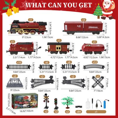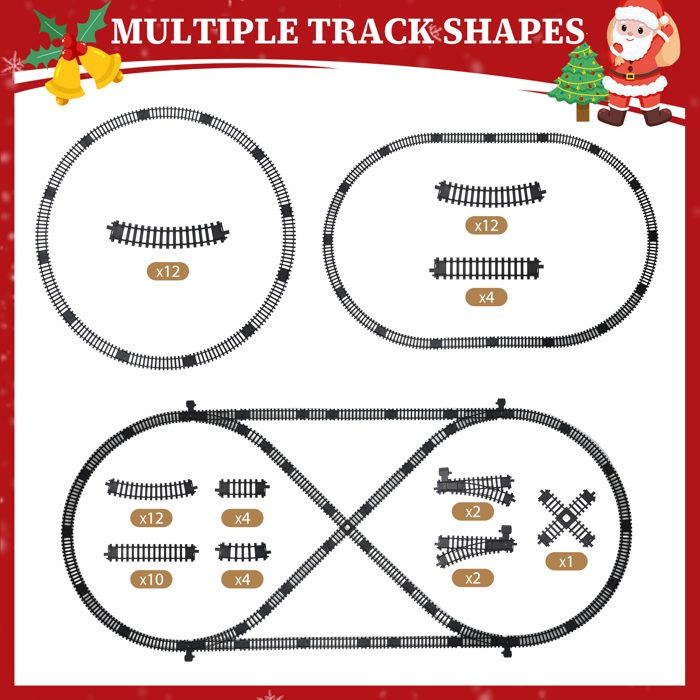 Fond de vacances d'hiver avec un joli petit train avec locomotive à... Complet et détaillé : cet ensemble de train de Noël comprend trois wagons, chacun avec son propre design et ses propres détails., ., L'ensemble complet offre une expérience de train complète et détaillée, permettant aux enfants d'explorer différents aspects du train et de s'engager dans des jeux imaginatifs. Effets lumineux et sonores : Les effets lumineux et sonores de ce train de Noël ajoutent des éléments magiques et enchanteurs à l'expérience de jeu., ., Le train s'illumine et produit des sons réalistes, rehaussant l'ambiance festive générale et créant une atmosphère captivante pour les enfants. Jouet Train Vapeur Lumière 2 Ensembles De Train De Noël Décoratifs (alimentés Par Expérience Electricité Enfant Avertissement De Sûreté Avertissement : veuillez nettoyer et désinfecter régulièrement les produits pour bébé pour maintenir l'hygiène. Chariot de courses pour enfants, jeu de simulation, caddie d'épicerie... Description du produit Description : Faites plaisir à vos enfants avec cet ensemble de train de Noël à vapeur télécommandé., ., Avec son ensemble de 22 pièces, ce train offre une expérience de jeu interactive et engageante., ., La télécommande électrique permet aux enfants de contrôler le mouvement du train, de changer sa direction et sa vitesse et d'activer des effets de lumière réalistes., ., La fonction vapeur ajoute une touche de réalisme, créant une atmosphère immersive et excitante pendant la récréation., ., Le train s'illumine et produit des sons authentiques, renforçant l'ambiance festive générale., ., L'ensemble comprend trois wagons, chacun avec son propre design et ses propres détails, offrant une expérience ferroviaire complète et détaillée., ., Cet ensemble de train de Noël est parfait pour les enfants, apportant joie, excitation et sentiment d'émerveillement pendant la période des fêtes., ., Regardez leurs visages s'illuminer de plaisir alors qu'ils jouent avec ce train magique, créant des moments joyeux et mémorables., ., Conseils sur la batterie :., ., Veuillez ne pas utiliser de piles alcalines puissantes, pour éviter d'endommager les composants électroniques et le circuit imprimé en raison d'une puissance excessive lors de l'ouverture du jouet., ., De plus, n'utilisez pas de piles rechargeables., ., Il est recommandé d'utiliser des piles au carbone AA ordinaires., ., Caractéristiques :., ., Coffret Train de Noël., ., -Couleur : comme indiqué., ., -Matériau : Plastique., ., -Taille : affichée comme image., ., -Batterie : 3,7 V 1000 mAh., ., -Temps de travail : 40min., ., -Temps de charge : 2-3H., ., -Distance de la télécommande : environ 2 à 5 m., ., Remarque : Mesure manuelle, veuillez permettre de légères erreurs de taille., ., Les couleurs peuvent exister de légères différences en raison des différents écrans., ., Forfait comprenant 1 x train de Noël. Train Électrique 22 Pièces Du Village De Noël à Prix