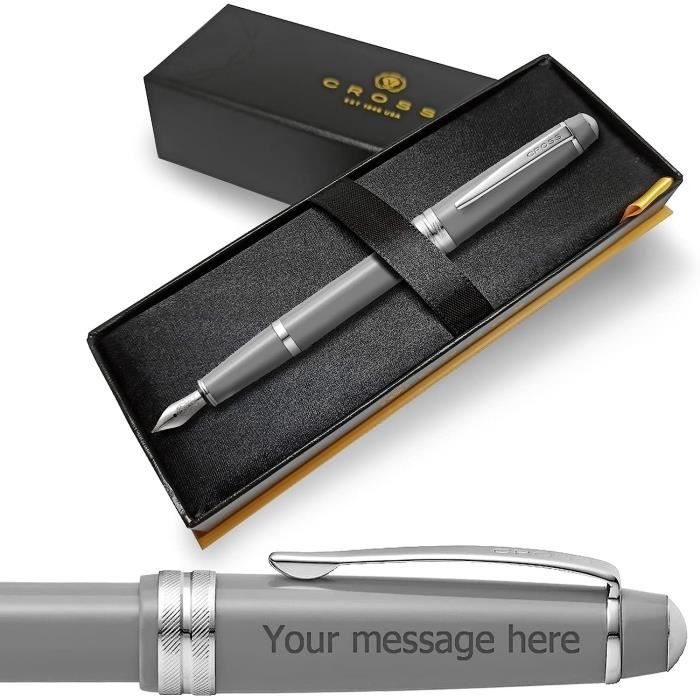 Un instrument d'écriture Cross offre à la fois praticité et valeur sentimentale. Une bille roulante SELECTIP vous permet d'échanger entre les recharges de stylo roller gel, stylo à bille Jumbo et un feutre (point poreux) pour une expérience d'écriture plus personnalisée. Stylo Plume Moyenne Encre Noire Cross Edge Stylo Roller (épaisseur De Trait M, Couleur De L'encre : Noir, Rechargeable, Avec Coffret Cadeau Premium), Vert Mat, 1 Pièce (1 Pièce Stylo Mont Blanc WATERMAN Perspective stylo roller, noir brillant avec finitions chromées, pointe moyenne... Recharge incluse pour écrire jusqu'à 1,1 km Cross présente des mises à jour passionnantes de notre populaire collection Bailey pour moderniser et améliorer l'expérience du consommateur. L'encre à bille est plus aqueuse, résultant en une pose plus fluide de l'encre, nécessitant une pression minimale de la main. Notre fondateur Richard Cross était un champion passionné de l'écriture en tant que forme d'art – une expérience personnellement enrichissante digne d'outils distingués et conçus par des experts. Prêt à offrir : le cadeau de choix pour des générations. Conçue avec un profil de taille moyenne confortable et un caractère traditionnel, la ligne est maintenant offerte dans des finitions supplémentaires avec un attrait générationnel. CROSS Patrimoine : nous écrivons notre histoire depuis 1846., Inventer Innovant., Toujours en évolution. Garantie mécanique à vie : tous les instruments d'écriture Cross sont incontestablement garantis contre les pannes mécaniques, quel que soit leur âge. Stylo Roller Cross® Bailey Rouge Mat Convertible | Élégance et Polyvalence pour une Écriture... Parfait pour les anniversaires, les remises de diplômes, les promotions, les anniversaires de mariage, etc. Depuis nos premiers jours, Cross a réécrit les règles pour mettre un stylo sur papier. Avec un profil de taille moyenne confortable et un caractère traditionnel, Bailey bénéficie d'un attrait générationnel. Cadeaux d'affaires haut de gamme : goodies luxe personnalisés