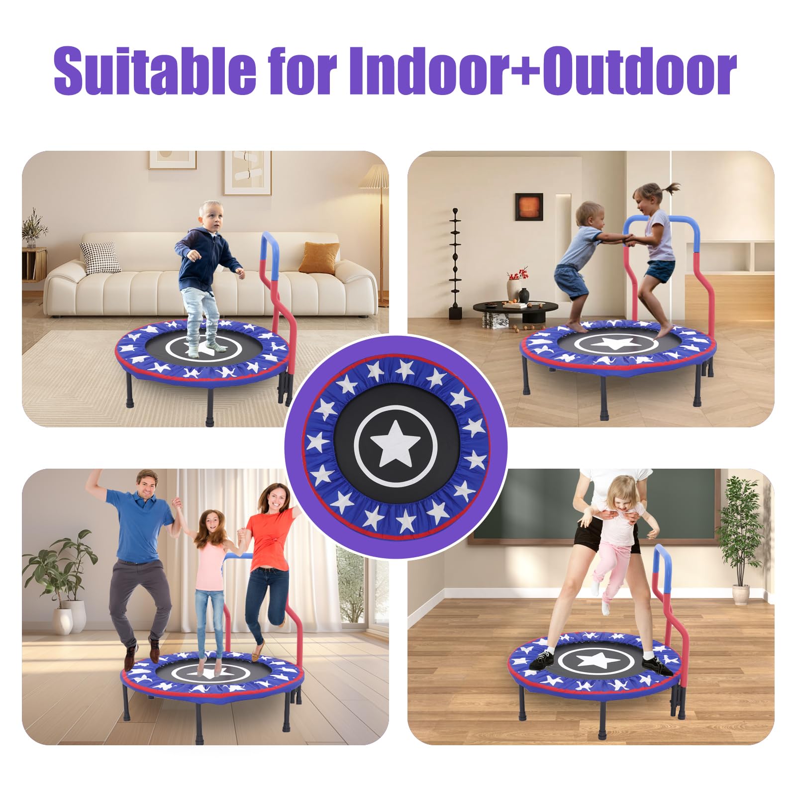 Klarfit Rocketkid Trampoline avec Filet de Protection, Trampoline Exterieur Enfant, poignée ☑️MOTIF ATTRAYANT & MEILLEURS CADEAUX POUR LES ENFANTS:Avec les motifs originals et fascinants, c’est vraiment un excellent premier trampoline pour vos enfants ! Jeu Enfant équilibre Trampoline Exterieur Enfant,Ensemble De Trampoline Intérieur Et Extérieur, Trampoline En Acier Mini Trampoline Les pieds en caoutchouc rendent le trampoline antidérapant et silencieux ; Promouvoir la croissance des enfants] Le trampoline de fitness pliable pour enfants apporte non seulement beaucoup de plaisir aux enfants, mais aide également les enfants à entraîner la fonction cardiopulmonaire grâce à la libération d’énergie, à augmenter la force musculaire, à favoriser la digestion, à améliorer la forme... COSTWAY Trampoline Enfant 92CM avec 21 Lumières LED & Poignée Amovible... ☑️FACILE À ASSEMBLER ET À RANGER:Avec le petit outil inclus, le mini trampoline peut être facilement assemblé ou démonté en moins de 10 minutes. Nous offrons une garantie de remboursement à 100% ou d'échange gratuit de 30 jours. Vous pouvez également le plier et le ranger dans un coin pour gagner de l’espace dès que votre enfant ne le joue pas; Il a un rebond optimal et un rebond stable sans blesser les genoux des enfants. Veuillez nous contacter en cas de problème lors de votre achat, et nous ferons de notre mieux pour le résoudre ; Le poids maximum est de 60 kg/132 lb.