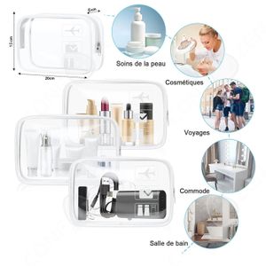 Set Pochettes Etanches alimentaire avec zip voyage avion 4 Pièces Trousses de Toilette Transparente, PVC Étanche Trousse de Maquillage de Voyage,Kit de Voyage pour l'Avion, Sac de Toilette. Livraison gratuite Pochettes Polypropylène Etanche Trousse Plastique Transparente Transparente | Kit Voyage Avion Avec 6 Flacon Trousse De Toilette Organiseur Valise Transparent Zippé Conforme aux Règles – Pochette Transparente AvionNos pochettes plastique zippées 1L respectent les normes de sécurité pour liquides. Pratique & Léger – Trousse Transparente VoyageAvec poignée détachable, ce sac zippé transparent est facile à transporter dans tout sac à dos ou sets de bagages. Belle Vous Pochette Plastique Zip Transparentes (Lot de 24) - Pochette... Étanche & Réutilisable – Pochette Étanche SécuriséeChaque pochette transparente zippée est résistante, imperméable et prévient toute fuite de liquides. Un accessoire voyage avion pratique et compact. Convient pour cabine avion, vacances et organisation au quotidien. Idéale comme pochette transparente pour cosmétiques, snacks ou accessoires électroniques.