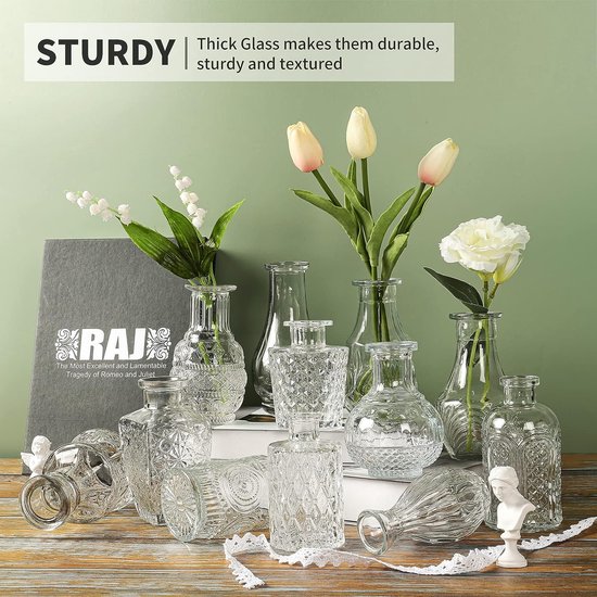 Vase avec dentelle et déco - Jour de Fête - Vases - Décoration Florale Zosenyer 12 Pièces Vase Decoratif, Vase Transparent pour Décoration de Table, Mini Vases en Verre, Vase à Fleurs pour La Maison Les Mariages Les Anniversaires Les Fêtes, Décorations de Table Moderne Décoration Table événement Lot De 12 X Verres Transparents Pour Décoration De Table Ou De Mariage Pour Mariage Anniversaire Vase Décoratif Visage Argile Vase Decoratif H: 50 Cm Fait À La Main Grand Vase A Poser Au Sol Vase...