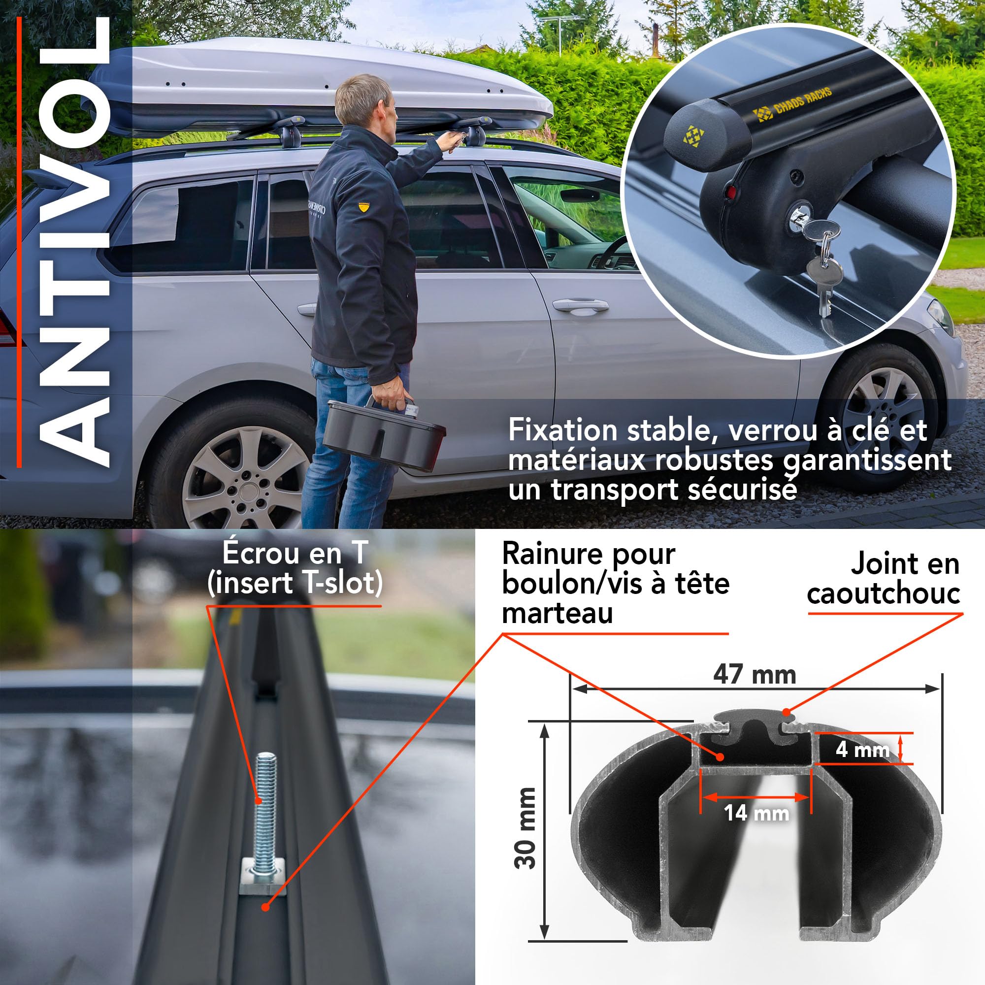 ➡️ [AVANTAGES] Sur les barres de toit, vous pouvez installer un coffre de toit, un porte-vélos, un kayak, une échelle ou encore un panier de toit ; Si vous vous demandiez comment emporter plus d’affaires en vacances, les barres de toit transversales sont la solution ideale ; Le transfert d’une partie des bagages sur le toit de la voiture permet une meilleure organisation de l’espace dans l’habitacle et offre plus de confort aux passager Chaos Racks Rails Ouverts Chaos Racks | Barres De Toit Transversales Universelles Transportez Porte Vélos Construction Barres Transversales Aluminium 135 Cm Barres de toit en aluminium ● Matériau : aluminium, plastique, caoutchouc ● Kit de montage : vis, rondelles Les barres de toit sont fabriquées en aluminium de haute qualité, résistant aux conditions météorologiques extrêmes, aux températures élevées et à la corrosion. Veuillez vérifier les dimensions compatibles du porte-bagages de toit avant de procéder à votre achat. Lot de 2 barres transversales de toit universelles de 120 cm ou 135 cm pour SUV, pour kayak, cargo, snowboard Pour plus de confort, le kit contient une notice claire et détaillée ● Cet accessoire pratique permet de transporter un coffre de toit, une échelle, des meubles ainsi que du matériel sportif tel qu’un vélo, des skis, un kayak, une planche de surf, un snowboard, etc. Nos barres de toit en aluminium sont la solution parfaite pour ceux qui souhaitent transporter davantage sans renoncer au confort. Barres transversales de toit universelles : nos barres transversales de toit de 135 cm (53,2 pouces) s'adaptent aux toits de voiture avec rails latéraux... Il suffit de fixer les barres de toit sur les rails de toit ou sur les points de fixation prévus par le constructeur. Équipées d’un système antivol verrouillable Légères et pratiques, ces barres de toit universelles sont la solution idéale pour ceux qui ont besoin d’un espace supplémentaire pour leurs bagages. ➡️ Vous devez transporter une charge supplémentaire ? Vous partez en vacances et souhaitez emporter plus de bagages ? Les galerie de toit sont la solution idéale pour installer un coffre de toit, transporter des objets supplémentaires ou votre équipement sportif ; Ce modèle est conçu avec des matériaux de haute qualité Aluminium | Plastique, Anodisé, Argenté, possède des barres d’une longueur de 135 cm et offre une charge maximale autorisée de 90 kg Achetez barres de toit occasion, annonce vente à Solliès-Toucas (83 Le montage et le démontage sont rapides et simples, ce qui facilite le transport de charges jusqu’à 90 kg (avant utilisation, vérifiez la charge maximale autorisée du toit de votre véhicule) ● Le produit est conçu pour un montage autonome – aucune visite en atelier n’est nécessaire ● L’installation est très simple et n’altère pas la structure du véhicule. Le système de verrouillage à clé garantit la protection de votre chargement à chaque arrêt