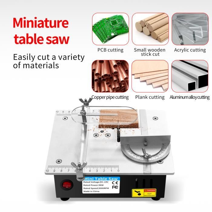Construction précise et robuste : la petite plaque frontale de scie de table a des marquages numériques clairs pour des coupes stables, précises et droites. Mini scie de table : la scie à table multifonction YSJWAER a une fonction de découpe, de ponçage, de gravure. La mini scie de table est livrée avec 4 types différents de lames de scie et des accessoires de ponçage, de polissage, de gravure. La hauteur de la lame peut être ajustée avec la clé hexagonale incluse. La puissance est fournie par un moteur en cuivre pur de 100 W. Mini scie circulaire de table, 300 W, scie de table, portable, de... Je vous donnerai une réponse satisfaisante dans les 12 heures. La profondeur de coupe est réglable de 0 à 16 mm. Mini scie à tabl 1 Scie Ponçage Gravure Bois Acrylique Tewpoy Mini Scie De Table Multifonction Pour Travaux Manuels, Puissance 100 W, Petite Scie De Table Scie Multifonction Bricolage Mini scie de table multifonction pour modélisme, artisanat, outil de coupe, portable, réglable, coupe, ponçage, gravure, perçage, machine tout-en-un pour... Vous pouvez me contacter si vous avez des problèmes d'utilisation et de qualité. Le déflecteur transparent empêche les débris d'éclabousser. Les coussinets en caoutchouc antidérapants absorbant les chocs sur le fond améliorent la stabilité. Ajoutez-le au panier en toute confiance Mini Scie De Table Électrique T4 96w, Petite Scie D'établi Pour Le Service après-vente : la mini scie à table multifonction YSJWAER a un contrôle de qualité strict. Pratique pour effectuer la coupe, le ponçage et d'autres travaux de manière stable, efficace, précise et facile. Vous permet de profiter du plaisir des loisirs créatifs à tout moment. La mini scie à table YSJWAER peut être ajustée à 7 vitesses.