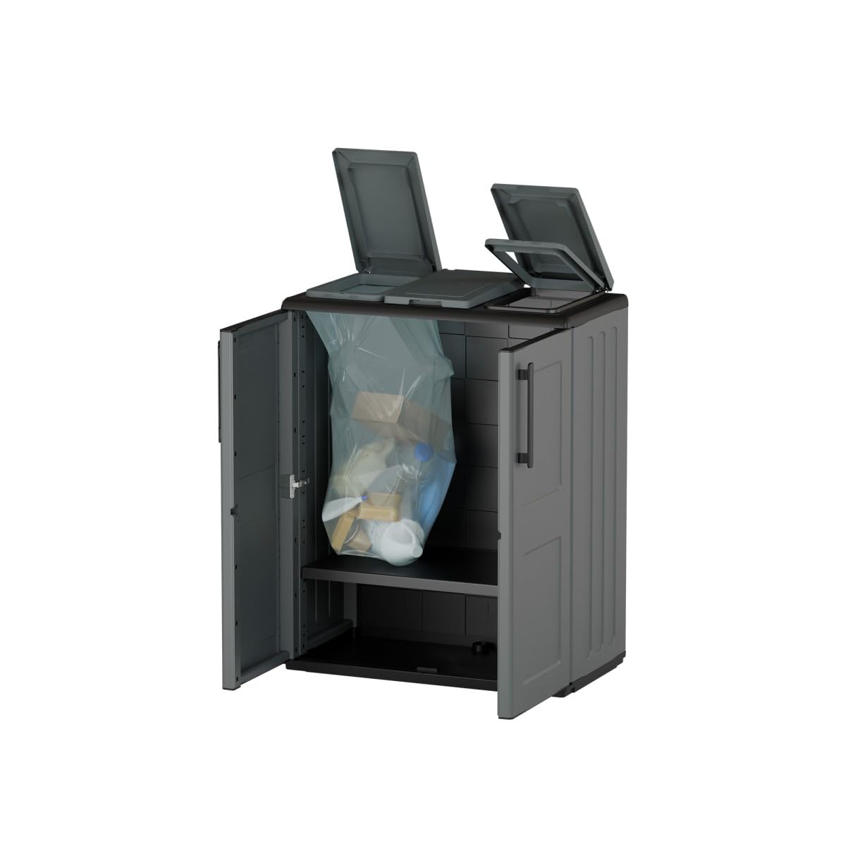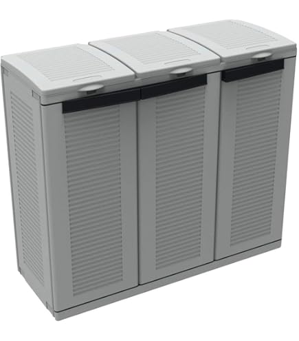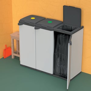 Fabriqué en polypropylène 100% recyclable, ce meuble de tri sélectif est robuste, résistant aux intempéries et parfaitement adapté à un usage extérieur ou intérieur. Vérifiez la stabilité de l'armoire. - Usage polyvalent : Idéal pour le jardin, le garage, la terrasse ou même l'intérieur. Avantages clés : - Robustesse & longévité : Résistant aux intempéries et aux UV, parfait pour l'extérieur. Meuble de tri des déchets Couleur gris design moderne. ✅ <p>Armoire pour tri-sélectif mi-haute INTEC pour distribution vers 3 poubelles par 3 anneaux de support de sac. Poubelle De Tri Poubelle Intérieure TRIMOUV Meuble De Tri Sélectif Mobile 3 X 60L Gris Manganèse 1896 Rangement Déchets Jardin Poubelle de tri sélectif- 60cm - 3 conteneurs (15L+ 2x7L - Couleur : Gris- Charnières : Acier robuste- 3 portes- Usage : Rangement intérieur et extérieur- Sécurité : Fermeture verrouillable (cadenas non inclus)- Dimensions : 102 x 37 x H84 cm- Poids : 12,85 kg Avertissement De Sûreté Rangez les outils dans l'armoire pour éviter les pertes et garantir un environnement de travail organisé. Doté de 3 supports de sacs-poubelles, de portes solides montées sur charnières en acier et d'une fermeture verrouillable, le Meuble à poubelles Gris 3 Sacs offre un rangement sécurisé et un tri efficace de vos déchets recyclables. Résiste aux Intempéries. Pack De 3 Sacs Tri SélectifU2013Poubelle De Tri Pour Déchets Et... Plastique 100% recyclable fabriqué en Italie. ✅ Charnières en Acier pour une Solidité Accrue : Contrairement aux charnières en plastique, elles supportent mieux le poids des portes et sont moins sujettes aux cassures. Polypropylène recyclable 100%, Fabriqué en Italie. INTEC Cache Poubelles 2 portes Gris - Tri sélectif Extérieur - Abri... Sa résistance aux UV et à l'humidité permet de la placer dans des jardins, terrasses ou garages, sans craindre les dégradations dues aux éléments. ✅ Support de Sac Interne Pratique : fonctionnalité particulièrement pratique pour ceux qui cherchent à organiser le recyclage de manière discrète et efficace dans leur jardin ou sur leur terrasse. Caractéristiques- Matériau : Polypropylène recyclable.