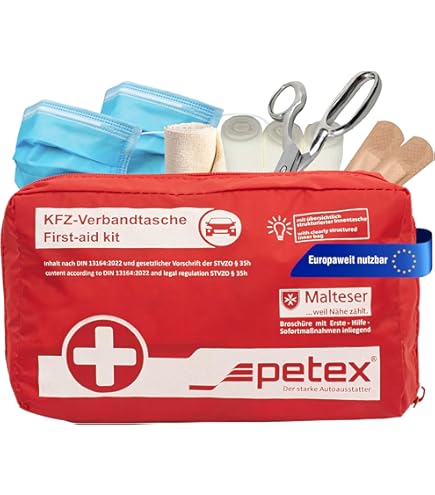 Avec notre kit, vous êtes parfaitement équipé dans toute l'UE en cas de contrôles et de pannes conformément à la réglementation actuelle en 2024 et évitez les amendes. Valable dans toute l'Europe : une trousse de premiers secours selon la norme DIN 13164:2022 est obligatoire conformément au § 35h StVZO. En outre, deux masques faciaux sont inclus, conformes à la nouvelle norme DIN 13164:2022., 🔹 Durée de vie de 4 à 5 ans : toutes les pièces stériles de notre kit de premiers secours pour voiture ont une durée de vie de 4 à 5 ans. Dans le cas où vous ne vous souvenez pas de votre cours de premiers secours en cas d'urgence, nous avons inclus des instructions claires (français non garanti). Trousse Premiers Secours Triangle Gilet Kit Sécurité Voiture AMIO Combi Plus - Trousse 1ers Secours, Triangle, Gilet - Conforme équipement Obligatoire Véhicule Contenu selon la norme DIN 13164:2022 : notre trousse de premiers secours pour voiture avec triangle de signalisation et gilet de sécurité est bien sûr conforme à la norme DIN 13164:2022 actuelle et répond ainsi à toutes les directives du code de la route. Après l'expiration, vous pouvez renouveler le contenu à moindre coût avec un kit de recharge, tandis que le sac peut être réutilisé, ce qui protège également l'environnement. Sac de premiers secours pour voiture / trousse de premiers secours Contenu selon DIN 13164 en vigueur Largeur env. 22 cm Hauteur env. 13,5 cm Épaisseur : env. 7,5 cm Matériel: nylon Couleur : rouge Ouverture avec fermeture éclair Avec Velcro au dos Grâce à la fermeture Velcro, la trousse de premiers secours peut être facilement fixée à... Scannez le code QR pour des instructions en plusieurs langues Le contenu est conforme à la norme DIN 13164:2022 et répond ainsi à toutes les directives du code de la route. 🔹 Kit 3 en 1 : notre kit de premiers secours pour voiture contient encore un gilet de sécurité et un triangle de signalisation. Trousse De Premier Secours Trousse De Secours Automobile Rouge Conforme à La Norme DIN 13164:2022, Y Compris Triangle De Panne Et Gilet De Sécurité, Kit De Premiers Secours Automobile | Trousse Combinée Rouge | 44296 Kit Urgence Voiture Norme 2022 La trousse de premiers soins permet de garder les fournitures dans un boîtier ignifuge compact idéal pour presque tout véhicule. Elle comprend : Boîtier moulé sur mesure avec logo Ford. Divers pansements, de la gaze et du ruban adhésif. Couverture de survie. Gants sans latex. Ciseaux, pincette et plus Après l'expiration, le contenu peut être renouvelé à moindre coût avec un kit de recharge et le sac reste utilisable.