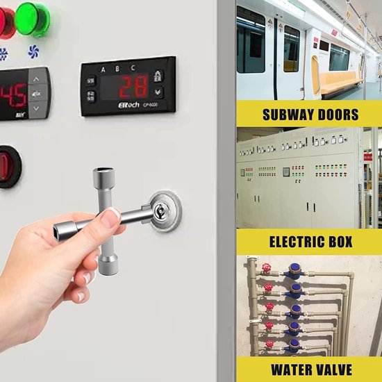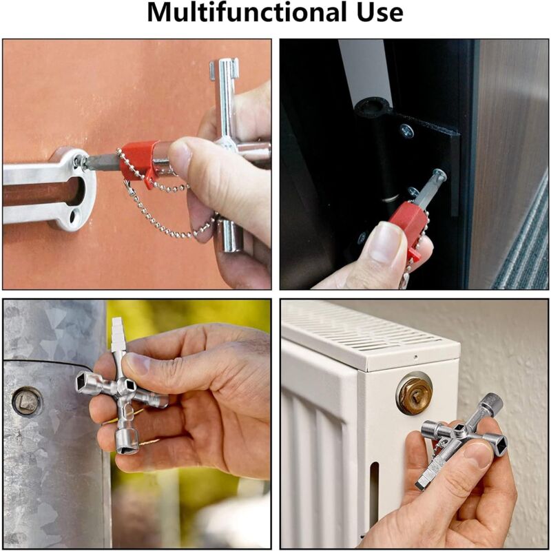 【Compacte et facile à transporter】Grâce à sa taille réduite et son format léger, cette clé triangle et clé universelle se glisse facilement dans une poche, une sacoche ou une boîte à outils. Elle convient parfaitement pour les particuliers bricoleurs comme pour les professionnels de la construction, de la maintenance ou des services publics. Clé Triangle Carré Armoire électrique Portable Clé Triangulaire Universelle à 4 Voies Pour Train, Ascenseur, Armoire Outil Portable Compteur Eau Gaz Radiateur Clé triangulaire universelle multifonction 4 voies, clé à interrupteur... Que vous soyez technicien, gestionnaire d’immeuble, pompier ou simplement particulier à la recherche d’un outil fiable et pratique, cette clé universelle vous accompagnera dans toutes vos interventions, en toute sécurité et avec efficacité. L’un des atouts majeurs de cette clé universelle est sa portabilité. Qu’il s’agisse de débloquer une armoire électrique, d’ouvrir un compteur, de manipuler un radiateur ou de déverrouiller une poubelle sécurisée, elle offre une solution tout-en-un performante. 【Large champ d’applications】Idéale pour l’entretien et les réparations, cette clé universelle 4 Way Fire Engine Key est adaptée pour accéder aux coffrets électriques, compteurs d’eau et de gaz, systèmes de chauffage, ascenseurs, armoires de service ou encore poubelles verrouillées. Elle intègre une 4 Way Multi-Function Triangle Key, un Cross Wrench et un Square Heads Versatile Tool, permettant d’intervenir sur des compteurs, coffrets électriques, armoires techniques et poubelles sécurisées. Grâce à son format compact et à sa légèreté, elle peut être facilement transportée dans une poche, une trousse à outils ou un sac de travail. Que vous ayez besoin d’un Triangle Square Hand Tool ou d’une Fire Brigade Key, elle offre une solution accessible et toujours disponible pour vos interventions quotidiennes. Avec ses fonctions de Triangle Wrench, clé armoire électrique, clé pompier et clef triangle, elle s’adapte à une multitude de situations du quotidien ou d’interventions d’urgence. 7 -Clé universelle triangulaire à quatre voies, multifonctionnelle... Elle combine la légèreté d’un Portable Electric Cabinet Key avec la fiabilité d’un outil professionnel, assurant un usage sécurisé et constant dans les environnements domestiques ou industriels. 【Sécurité et polyvalence d’utilisation】Cette clé en croix universelle propose un accès sécurisé aux installations techniques grâce à ses embouts variés, incluant Triangle Wrench, clef triangle et clé pompier. Ergonomique et simple à utiliser, elle convient aussi bien aux techniciens qu’aux particuliers souhaitant disposer d’un outil multifonction fiable. Clé à 4 Voies, 4 Voies Clé Multifonction, Clé en Croix Universelle pour