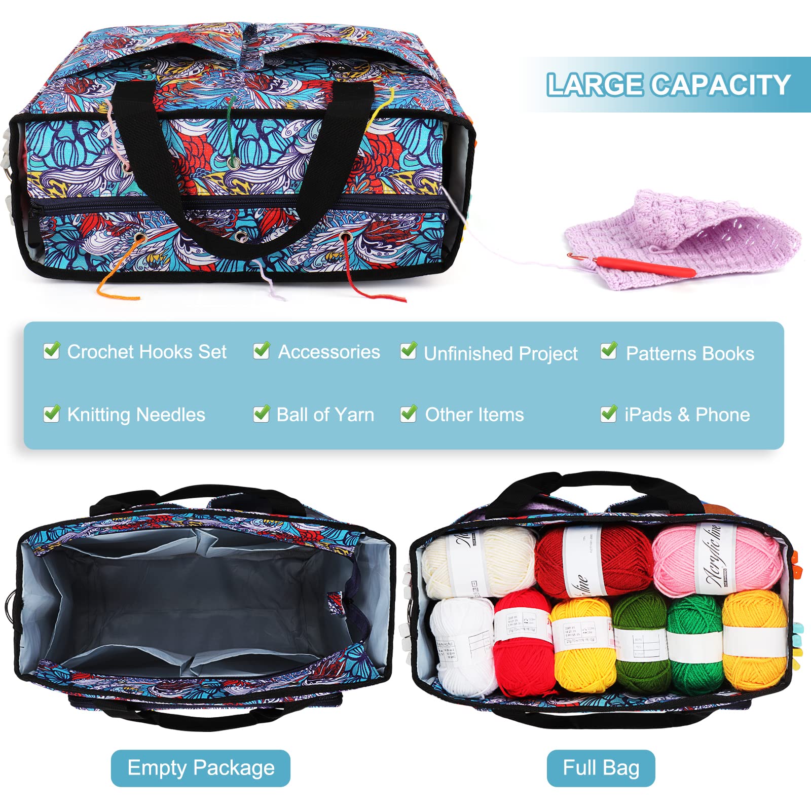 Doublé en coton et double couture pour qu'il dure et conserve sa forme sans s'affaisser portable pour fils, sac fourre-tout, trousse de crochet, crochets et... - Le sac à crochet dispose d'une variété de petites poches qui peuvent être facilement ouvertes et fermées avec une fermeture éclair soignée. Sac à tricoter de grande capacité : il s'agit d'un sac à crochet bien conçu et très pratique avec une taille de 32 x 28 x 22 cm, avec beaucoup d'espace pour ranger le fil et les accessoires Le design large ouvert de ce sac à fil vous offre un moyen plus facile d'accéder et d'organiser votre fil. Le grand sac à tricoter avec 6 trous permet au fil de passer à travers, empêche le fil de s'emmêler et facilite le crochet ou le tricot. Si vous êtes à la recherche d'un sac de rangement multifonctionnel pour tricot, ce sac est votre meilleur choix Aeelike Grand sac à tricoter, sac de crochet, sacs à tricoter et organiseurs de tricot, sac de fil avec trou et crochet de suspension pour projets de tricot ou de crochet, organisateur de rangement de fil, sacs de voyage portables pour femme Caractéristiques : - Disponible en 5 couleurs : bleu, rouge rouille, rose, noir, vert paon. En outre, une poche en PVC à l'avant du sac de rangement pour crochet et tricot pour ranger les téléphones mobiles. Sac à Tricoter Portable, Sac De Rangement De Fils,... U2013 Grandado Sac A Tricoter Rangement Le compartiment principal est très spacieux et peut contenir du fil avec votre projet actuel. - Les sacs à tricoter offrent un très grand espace de rangement pour le fil et les aiguilles, et bien sûr d'autres accessoires de tricot ou de crochet. Sac à Tricoter Sac Rangement Tricot Aeelike Grand , Sacs à Tricoter Et Organiseurs De Tricot, Sacs à Crochet Pour Aiguille à Laine Sac à Tricoter Organisateur Ils peuvent contenir une variété d'aiguilles selon vos préférences, taille, épaisseur ou type d'utilisation. C'est donc une merveille peu encombrante qui n'est pas seulement adaptée pour un usage quotidien et le transport, mais peut également être rangée lorsque vous n'avez pas le temps de vous consacrer à votre passe-temps préféré. Il peut contenir une grande quantité de laine ainsi que des aiguilles à tricoter ou des crochets. Aeelike Sac de rangement portable pour fil à tricoter La toile est robuste et facile à nettoyer, beaucoup d'espace pour le fil, les aiguilles/crochets et les accessoires. Les œillets latéraux sont parfaits pour garder le fil contenu et propre. Le sac à dos à tricoter peut contenir de grands projets de tricot avec facilité et ne semble pas déplacé n'importe où. Les sangles de sac à... La poche avant dispose de plusieurs fentes élastiques pour contenir des crochets ou des aiguilles à tricoter. - Pour les déplacements, vous avez également une bandoulière amovible et réglable si vous ne voulez pas le porter par la poignée sur le dessus. Il est livré avec une dragonne ou une bandoulière amovible pour le transport. Sacs à tricoter multifonctionnels et organiseurs de tricot : le sac de rangement amélioré dispose d'un crochet de suspension en métal qui maintient le sac ouvert pendant le crochet/tricot. - Sac à fil avec trous permettant d'enfiler le fil dans le sac principal afin que le fil à l'intérieur ne soit pas sale ou poussiéreux pendant le traitement. Sac portable pour crochet ou tricot : ce sac en laine est magnifique, avec un tissu en coton dense à couches extérieures qui a été matelassé pour plus de solidité et de durabilité.
