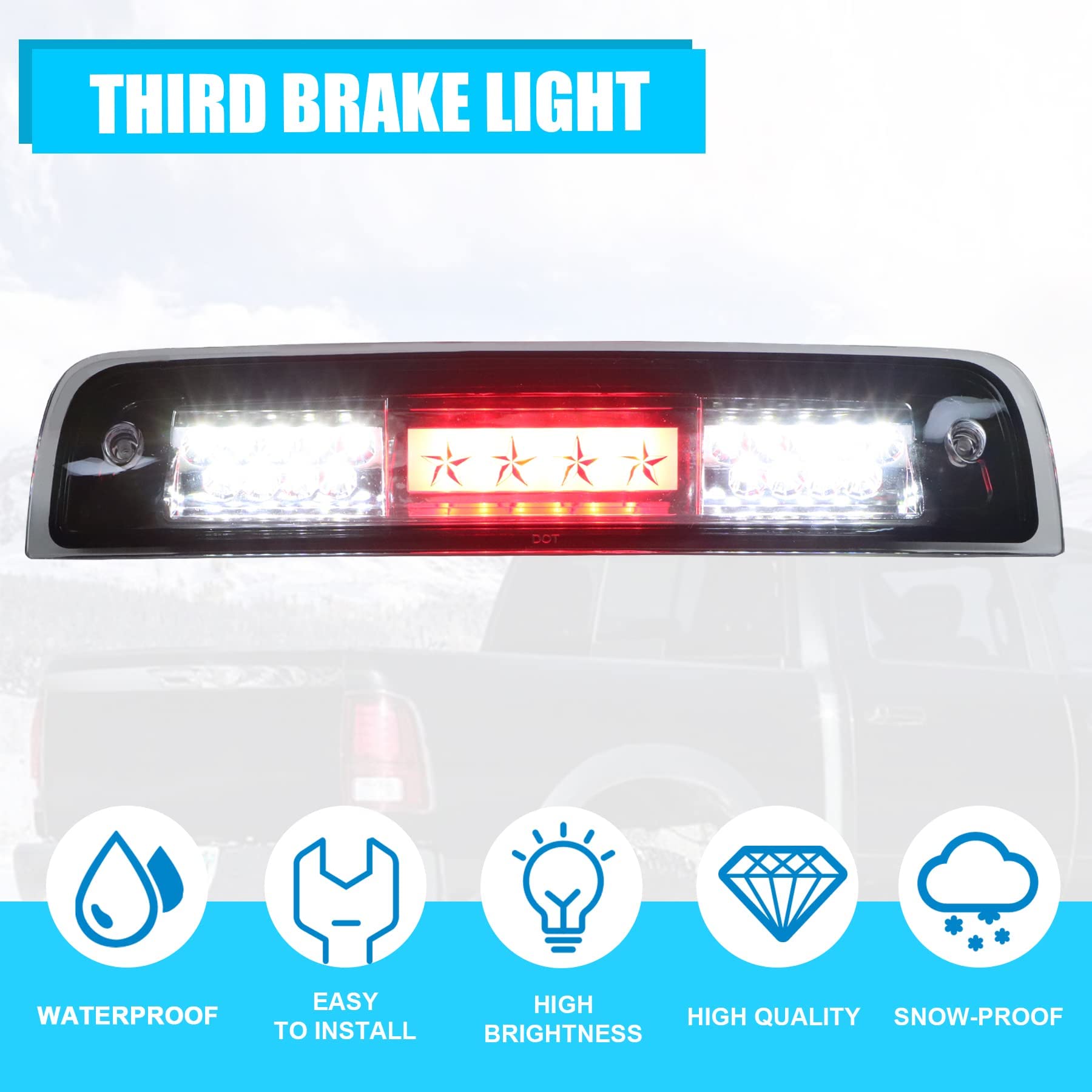 Résistant aux intempéries comme la pluie, la neige et les fortes chaleurs, il conserve son aspect et sa fonctionnalité sur le long terme, réduisant ainsi les coûts de remplacement. Feu Cargo LED Brillant Troisième Feu Stop À LED Pour Dodge Pour RAM 1500 2500 3500 2009-2018 Feu Arrière Cargo RAM Montage- pour Dodge pour RAM 1500 2009 2010 2011 2012 2013 2014 2015 2016 2017 2018- pour Dodge pour RAM 2500 | 3500 2010-2018Puissance | SLT | ST | Laramie | TRX4 | SportFonctionnalitéFonction d'éclairage de chargement super lumineux intégrée. Nom : troisième feu stop Couleur de la lumière : rouge blanc Couleur des verres : fumée Type d'ampoule : LED Fonction... Remarque : Il est recommandé d'utiliser un outil manuel pour l'installation, car les outils électroniques sont souvent trop serrés et le boîtier est facile à casser. Technologie LED durable et performante: Les ampoules LED avancées de notre feu stop arrière haut de gamme offrent une longévité et une efficacité supérieures. Ce troisième feu stop LED va vraiment améliorer la sécurité de votre Dodge RAM ! Conçu spécifiquement pour les RAM 1500 (2009-2018), 2500 et 3500... CaractéristiquesCouleur de la lumière : rouge + blancCouleur des verres : transparentCouleur du réflecteur : noirCouleur du boîtier : noirType d'ampoule : LEDFonction LED: frein, chargementMatériau : plastique ABS, lentille en polycarbonateEmplacement sur le véhicule : arrièreType de montage : remplacement directNuméro de pièce du fabricant: 55372082ADNuméro de pièce d'échange: 55372082ACAutre numéro de pièce: 55372082AE, 55372082AFEmballage1X 3ème feu stopSuper lumineux : ce troisième feu stop offre une efficacité lumineuse élevée. Lumières LED super brillantes comparées à l'halogène OEM. Avec une durée de vie bien supérieure à celle des ampoules traditionnelles, ce feu réduit les remplacements fréquents, ce qui en fait un choix fiable pour une utilisation quotidienne dans divers environnements de conduite. 3ème Feu Stop LED Dodge RAM - Remplacement Direct 2009-2018 Plastique ABS / Lentille en polycarbonate / Conception spéciale LED 3D. Fabriqué avec des matériaux de haute qualité, il est très durable.