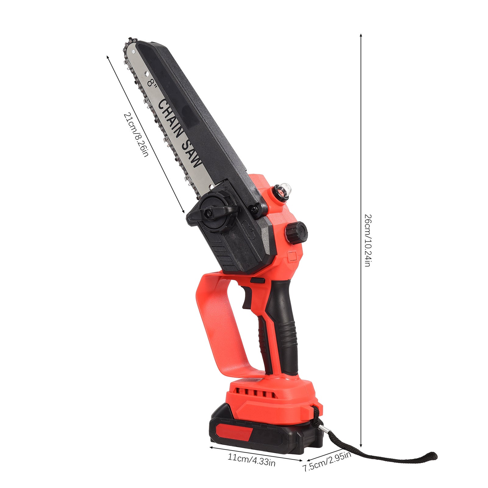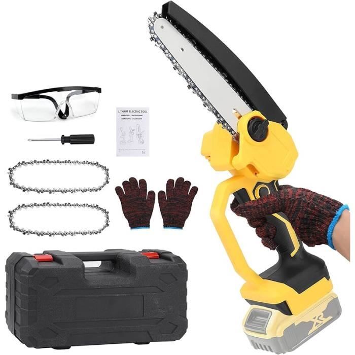 Mini tronçonneuse sans fil SHARE20V, 12 cm, 20 V Li-ion, 2 Ah La mini tronçonneuse sans fil, avec sa lame de 15 cm et ses batteries puissantes de 20V, pourrait bien être la solution idéale. Conçue pour vous offrir performance et praticité, elle vous permet de travailler sans l’encombrement des fils tout en bénéficiant de la sécurité grâce à son verrou dédié Tronçonneuse Electrique Mini Tronconneuse Mini Tronçonneuse Sans Fil 15cm - 2 Batteries Scie Chaîne 15cm [88 % ↑↑Performances]➤ Grâce à son moteur de nouvelle technologie, cette mini tronçonneuse sans fil offre une efficacité et des performances améliorées de 88 %. Son couple élevé est puissant et offre une puissance et une vitesse exceptionnelles, vous permettant de vous attaquer facilement aux tâches de coupe difficiles. Mini tronçonneuse sans fil 15 cm avec moteur sans balais amélioré et... Le moteur en cuivre pur prolonge l'autonomie de votre outil. Elle coupe à des vitesses allant jusqu'à 5,8 m/s, réduisant considérablement le temps de coupe Il suffit de brancher la batterie et de l'utiliser. [Portable et à une main]➤ La tronçonneuse de poche est déjà installée à sa livraison.