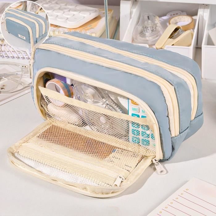 Trousse à crayons de grande capacité avec 4 compartiments, fermeture éclair, poignée portable, esthétique, trousse à crayons pour bureau, école, adolescent... 4 compartiments : Cette trousse possède 13 fentes de chaque côté, ce qui permet d'organiser facilement stylos et crayons. Et les 2 grands compartiments au centre peuvent contenir vos fournitures scolaires et vos besoins quotidiens, en plus d'une poignée solide pour le transport. Trousse 4 Compartiments Trousse à Crayons Grande Capacité Avec 4 Compartiments, Trousse à Trousse Cadeau étudiant Rose Il peut contenir jusqu'à 100 crayons, des notes autocollantes, des gommes, des taille-crayons et d'autres fournitures scolaires. Trousse Maquillage étudiante Trousse Scolaire Grande Capacité - 4 Matériau résistant et lavable : Fabriqué en tissu Oxford de haute qualité, il est résistant aux déchirures, aux rayures et facile à nettoyer. S'adapte facilement à l'école, au bureau ou en voyage.