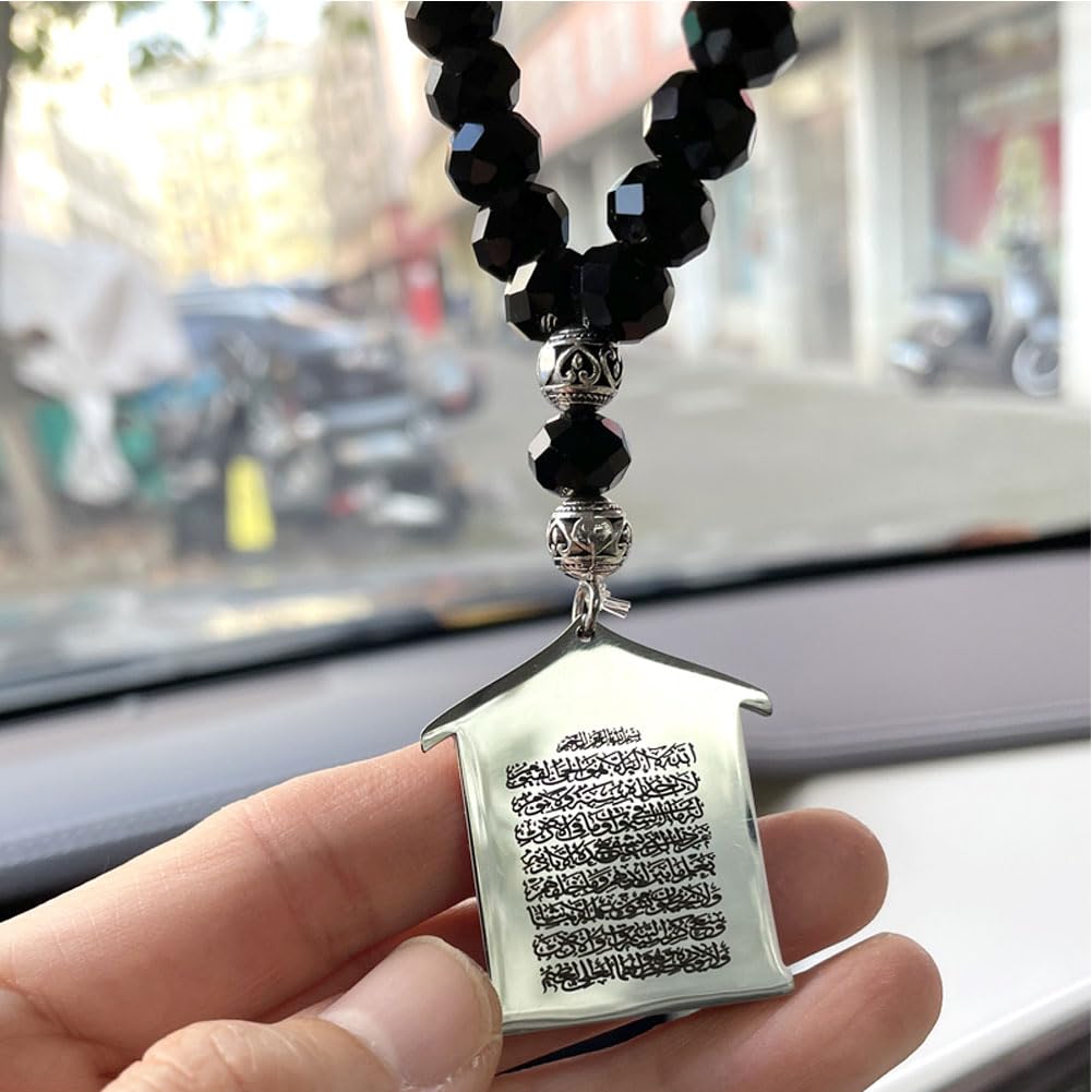 Tasbih - perles de prière musulmane en pierre naturelle d'oeil de tigre Pendentif Voiture Coran Allah Prière Turque Musulmane Avec 33 Perles Noires Ottomanes - Chapelet Chapelet 33 Perles Voiture Design islamique authentique : cet élégant pendentif de voiture est doté de 33 perles de prière noires turques traditionnelles et d'un charme Ayatul Kursi magnifiquement inscrit, combinant l'art d'inspiration ottomane avec la profondeur spirituelle Suspension de voiture du Coran Icône 3d Ilustration Ramadan Islamique Croissant De Lune Etoile... Décoration de voiture, ornements de voiture, accessoires de camion, gadgets cool Pendentif de voiture Islam