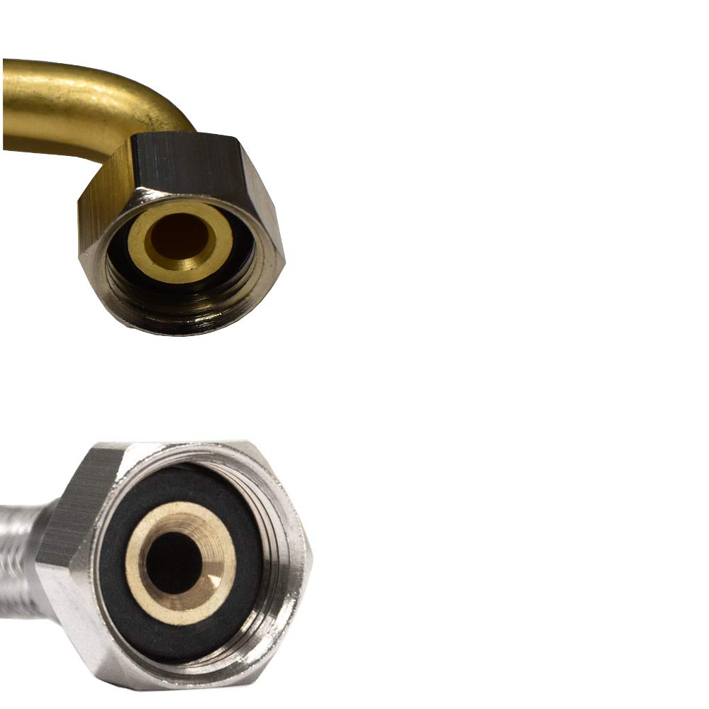 XPOtool Tuyau blindé Flexible 800mm DN8 Raccord coudé 3/8 (14,95mm Remarque : Joint inclus pour le raccord droit avec écrou de raccord (filetage intérieur). Tresse Acier Inoxydable AISI304 DN8 DVGW Tuyau Blindé Avec Tresse En Acier Inoxydable Tuyau Blindé Acier Inox Remarque : Sur le côté de raccordement « avec arc » et le filetage extérieur ne sont pas inclus. Sa certification DVGW garantit le respect des normes d'hygiène les plus strictes, tandis que le tuyau intérieur en silicone alimentaire assure un transport impeccable de l'eau potable sans modifier son goût Acheter tuyau nitrile acier galvanisé revêtu pvc sur la boutique Mon... Tuyau intérieur en silicone. Raccords en laiton, tressage en acier inoxydable AISI304, manchon en silicone, tuyau intérieur pour eau potable, certifié DVGW W543UBA joint KTWD inclus dans le « raccord droit avec écrou de raccord (filetage intérieur) » sur le côté de raccordement « avec archet » et pour le filetage extérieur », aucun joint n'est inclus. Les tuyaux flexibles sont parfaitement adaptés à la connexion d'eau potable. Les propriétés uniques du tuyau intérieur en silicone font de ce tuyau un raccord particulièrement flexible et extrêmement hygiénique. Testé pour l'eau potable, DVGW W543, UBA KTW. Notre tuyau blindé avec tressage en acier inoxydable est un tuyau en silicone flexible de qualité alimentaire certifié DVGW.
