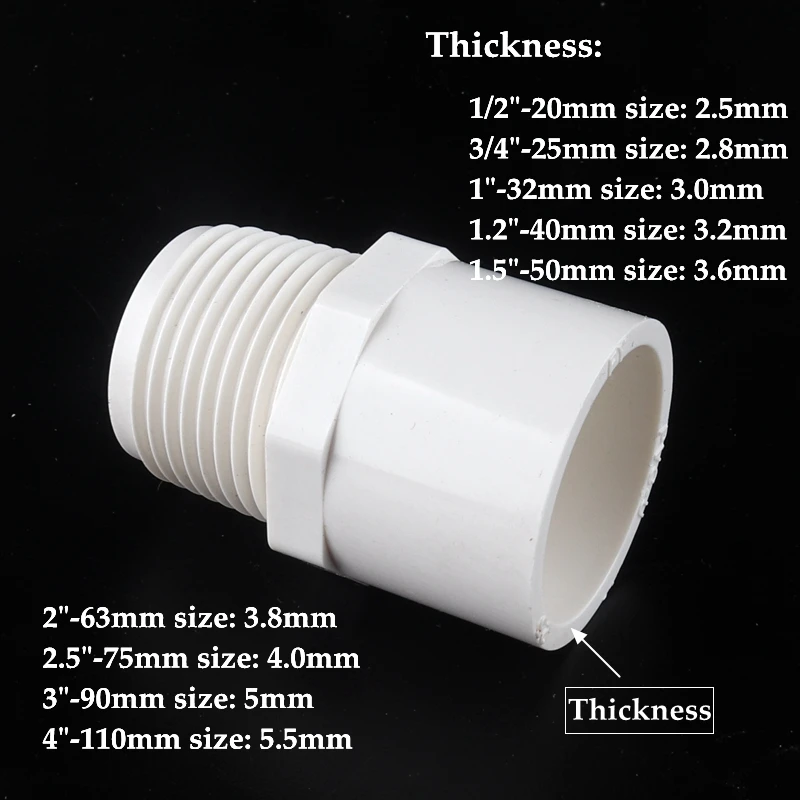 Tuyau d'arrosage,Connecteur de filetage PVC 1-2 3-4 1 1.5 20-25-32 Tuyau PVC Fileté Aquarium Tuyau En PVC à Filetage Complet Pour Aquarium, Joint étendu Raccord Allongé Pvc Filtre à eau réutilisable Spin Down avec filetage âle, pré-filtre à... DescriptionTuyau fileté en PVC 1/2 3/4 1 Joint allongé for aquarium 20 mm 25 mm 32 mm Connecteur allongéDrainage de l'aquariumMatière : PVCCouleur : grisPas de vis : 1,5 mmLongueur : 5cm/10cm/20cmTaille1/2 pouce : diamètre extérieur 20 mm ;3/4 pouce : diamètre extérieur 25 mm ;1 pouce : diamètre extérieur 32 mm ;1-1/4 pouce : diamètre extérieur 40 mm ;1,5 pouce : diamètre extérieur 46 mm ;2 pouces : diamètre extérieur 58 mm ;2,5 pouces : diamètre extérieur 73 mm. 5 pièces G1/4 connecteur de filetage mâle raccord de tuyau en laiton... Connecteur d'eau de jardin Type : Connecteurs mâles Tuyau en PVC à filetage complet for aquarium, joint allongé, connecteur à filetage mâle 20/25/32/40/50/63 mm, drainage allongé , Matière : Plastique