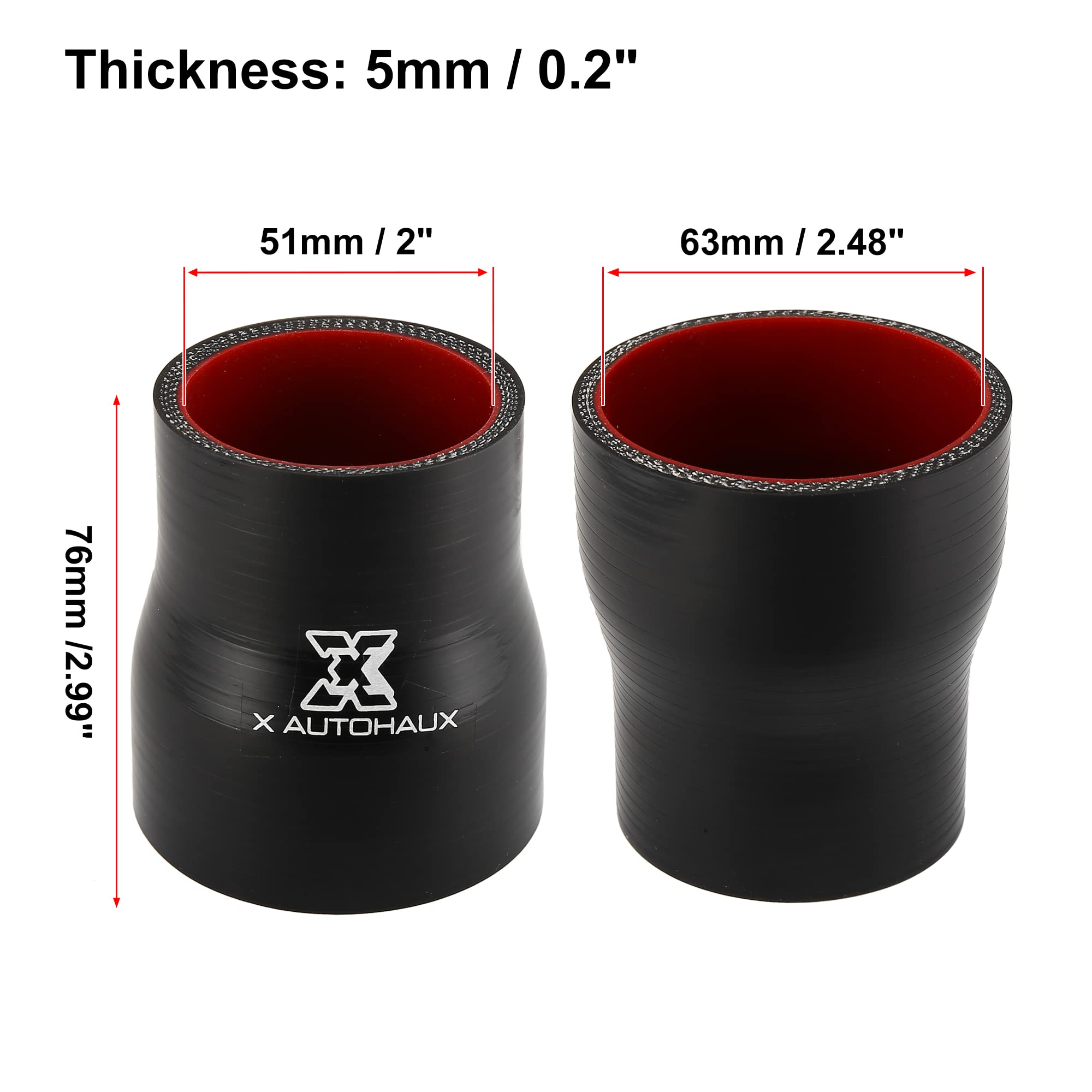 Température de fonctionnement : de -60 °C à 300 °C Remarque : Veuillez vérifier soigneusement la taille avant de commander. Tuyau Tube Silicone X AUTOHAUX 55mm ID 65mm OD 10cm Long Rond Droit Tube refroidisseur intermédiaire Universel Voiture Rouge 1Pcs - Bricolage Bon remplacement : c'est un bon remplacement pour les anciens ou cassés. Auto Raccord De Tuyau X AUTOHAUX 4pcs 8mm - 4mm Droit Forme Barb Laiton Tuyau Silicone Le tuyau relie le système de refroidissement de la voiture qui garantit que le moteur de la voiture fonctionne bien. Les mesures étant prises à la main, les tailles indiquées peuvent varier de 1 à 5 mm. 11,5-23,5 mm droit - Johonneur généraux de tuyau de climatisation... Bonne qualité : le tuyau est fabriqué en silicone, durable, utilisation pour une longue durée de vie. Veuillez vérifier soigneusement la taille avant de commander. Matériel: Silicone de haute qualité.nCouche de tissu : 3 couches de tissu.nTempérature de résistance : -50℃ à 250℃.nPression de résistance : 12 kg/bar (1,2 MPa... Taille : diamètre intérieur : 55 mm, longueur : 200 mm, épaisseur : 5 mm. Contenu de l'emballage : 1 tuyau en silicone refroidisseur intermédiaire Mais veuillez noter que le tuyau en silicone ne convient pas pour le transfert d'huile ou de carburant. Description : Fabriqué en matériau de qualité pour une longue durée de vie. Le tuyau améliore le débit et la performance du système de refroidissement du moteur.