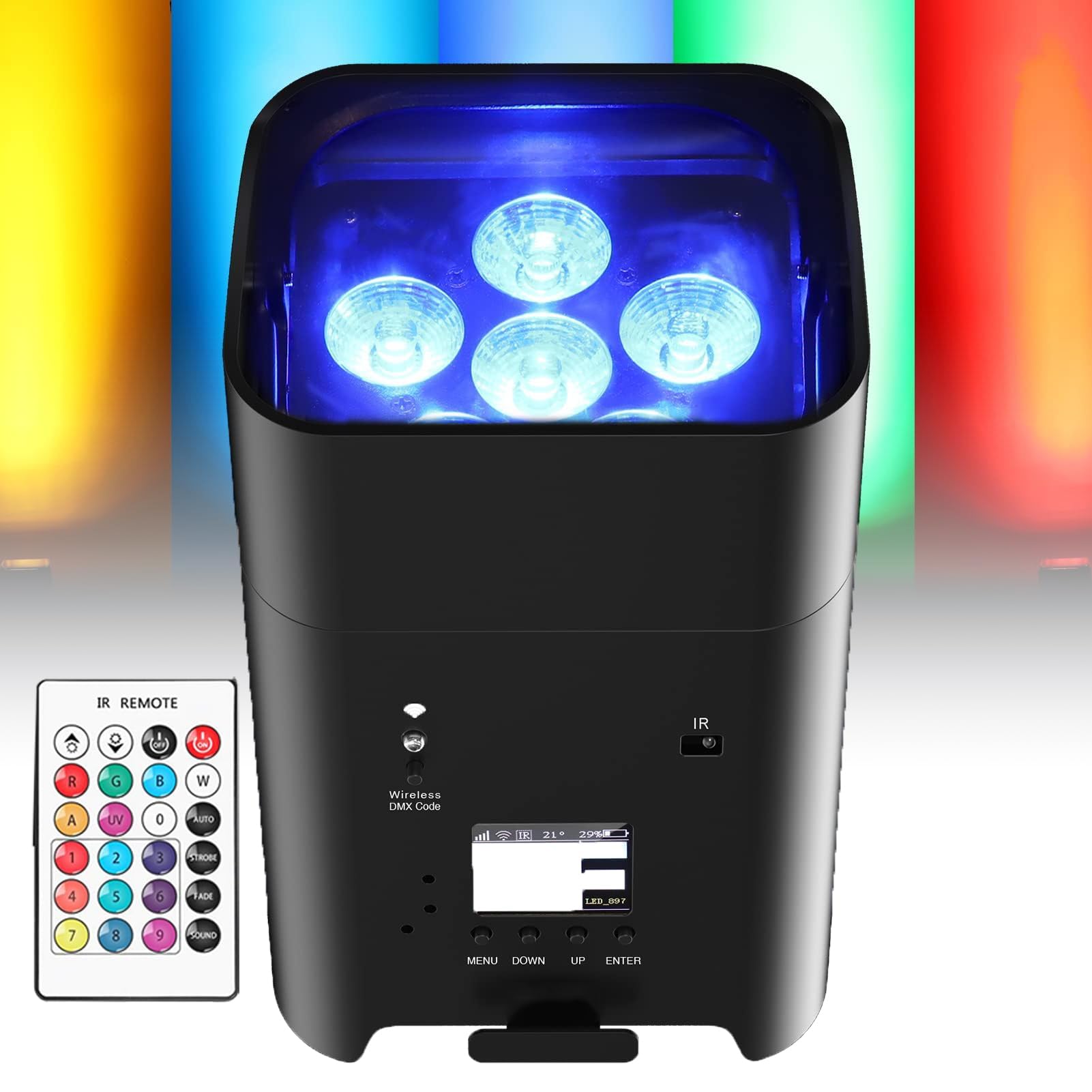Mode Automatique: Le par led peut être facilement réglé sur divers effets lumineux tels que RGBWA UV simple/couleur de mélange, stroboscope, dégradé, saut de couleur, couleurs statiques, mutation, gradateur etc. Par DMX Spectacle U`King 240W Outdoor Waterproof Rgbwa Uv 6In1 Par Light For Disco Dj Dance Hall P DMX Sans Fil APP Contrôle Données techniques : Alimentation : 12 V, 2 A Puissance nominale : 24 W Capacité : 5 200 mA Autonomie : 4 heures avec luminosité, 7heures en mode pilote automatique Autonomie : 4 heures Protocole de contrôle : Télécommande infrarouge Portée d’éclairage : jusqu’à 8 mètres du récepteur Source lumineuse : 4 LED de 10 W (RGBWA+UV)., Angle d’irradiation : 20°., Indice IRC : Ra ≥ 90., Fréquence du stroboscope : 1 à 25 Hz Modes de fonctionnement : automatique, contrôle musical, maître-esclave, télécommande, DMX sans fil, application mobile Canaux de contrôle : 6/8/10 canaux Protocole : DMX512 sans fil 2,4 GHz Matériaux : aluminium + aluminium. Par led autonome sur batterie professionnel, RGBW, Led , 12X18W RGBWAUV Flexibilité exceptionnelle grâce à l'application smartphone, au DMX sans fil, à la télécommande et à la synchronisation maître/esclave. Boîtier métallique 100 % silencieux et résistant, avec une excellente dissipation thermique pour une longue durée. Éclairage LED - RGBWA UV - Éclairage de scène - 7x18W - Longue durée... Fonctionne parfaitement pour une installation et une utilisation prolongées., 3., Télécommande radio 4 en 1 (application/DMX/télécommande/synchronisation). Dimensions du produit : 15,6 x 14,2 x 6,3 cm. Batterie 5200mAh : La batterie 5200mAh intégrée au projecteur Par LED permet un fonctionnement sans fil (la batterie dure 4 à 7 heures) avec seulement 6 heures de charge rapide, parfaite pour les événements en extérieur Lumière UV RGBWA plate à LED 6 en 1, lumière de lavage DJ, lumière de ) et 16,7 millions de combinaisons de couleurs., 2., Batterie longue durée de 5 200 mAh | Autonomie de 7heures La puissante batterie de 5 200 mAh offre 4 heures d’autonomie à pleine luminosité ou 7,5 heures en mode couleur. Diverses méthodes de Contrôle: Par led batterie dmx sans fil ont plusieurs méthodes de contrôle : DMX , maître-esclave, automatique, son activé, IR télécommande, sans fil 2,4 GHz, contrôle de WiFi APP (prend en charge les systèmes IOS et Android), peut facilement contrôler la couleur de la lumière par