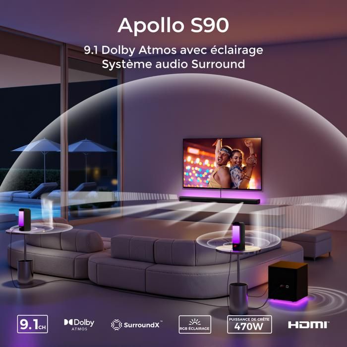 La barra de sonido 5.1 Ultimea Apollo S80 viene con Dolby Atmos, iluminación ambiental... Lorsqu'elle est connectée à des appareils de décodage Dolby, cette barre de son transforme votre espace en un home cinéma, offrant un réalisme sonore 3D accru. BassMX améliore les scènes d'action et les explosions avec une puissante réponse basse de gamme, augmentant les performances de vos basses. 6 modes RVB prédéfinis et des millions de couleurs : l'éclairage RVB d'Apollo S80 peut régler la luminosité et la couleur, 6 modes prédéfinis y compris fête, film, musique, etc. Design détachable avec canal central : le design amovible de la barre de son 3 en 1 avec un canal central supplémentaire rend la voix humaine plus claire et plus équilibrée tout en améliorant le sens du positionnement pour obtenir une synchronisation audio-visuelle vous permettant de l'assembler dans différents styles pour s'adapter à la disposition et à l'atmosphère de votre pièce. ULTIMEA Barre de son 5., 1, Apollo S80 Contrôle intelligent par application pour des réglages audio intuitifs : personnalisez votre expérience audio comme jamais auparavant avec l'application Ultimea. ULTIMEA 5.1ch Barre de Son avec Dolby Atmos, Soundbar TV Système de Son Surround avec Caisson de Basses, Barre de Son PC Amovible avec RVB, Puissance de 320W, HDMI eARC/Opt/AUX/BT, Apollo S80 Le design divisé permet d'économiser de l'espace tout en améliorant le champ sonore. Les aimants de qualité aérospatiale et les diaphragmes composites garantissent un dialogue clair et une performance audio réactive. Barre De Son Panasonic Sans Fils ULTIMEA Barre De Son Surround Virtuelle 5.1 Pour TV, Puissance De Crête Son Surround TV Système de son surround 5., 1 : cette barre de son 5., 1 canaux est équipée de 5 pilotes avancés de gamme complète, plus un caisson de basses de 5,25 pouces, pour produire un son équilibré et immersif. Remarque : recommandé pour un espace de 200 à 100 m². Home Cinéma avec Dolby Atmos : créez un paysage sonore multidimensionnel pour un divertissement immersif. ULTIMEA Barre de son 5,1 ch avec Dolby Atmos, barre de son avec lumière RVB pour home cinéma, système de son surround 3D avec contrôle par application, barre de son avec caisson de basses, égaliseur réglable, Bluetooth 5.3, HDMI eARC, Apollo S80 Amélioration de la décoration intérieure : la barre de son Apollo S80 offre non seulement une qualité sonore exceptionnelle, mais fonctionne également comme un hub de divertissement 2 en 1, alliant un son de haute qualité avec un éclairage RVB dynamique. Plongez dans des basses fréquences riches et ressentez l'impact de chaque battement. Avec une transmission audio avancée, Apollo S80 prend en charge avec Dolby Atmos, effet audio multicanal haute résolution. Remarque : le rétroéclairage de la barre de son ne peut pas être synchronisé avec les couleurs et le rythme de l'écran du téléviseur. Caisson de basses filaire de 13,3 cm avec technologie BassMX : cette barre de son dispose d'un caisson de basses filaire de 13,3 cm de large volume, pour obtenir des basses plus robustes. Transmission audio sans perte : HDMI-eARC possède une bande passante de 37 Mbps, dépassant les 1 Mbit/s de HDMI ARC.
