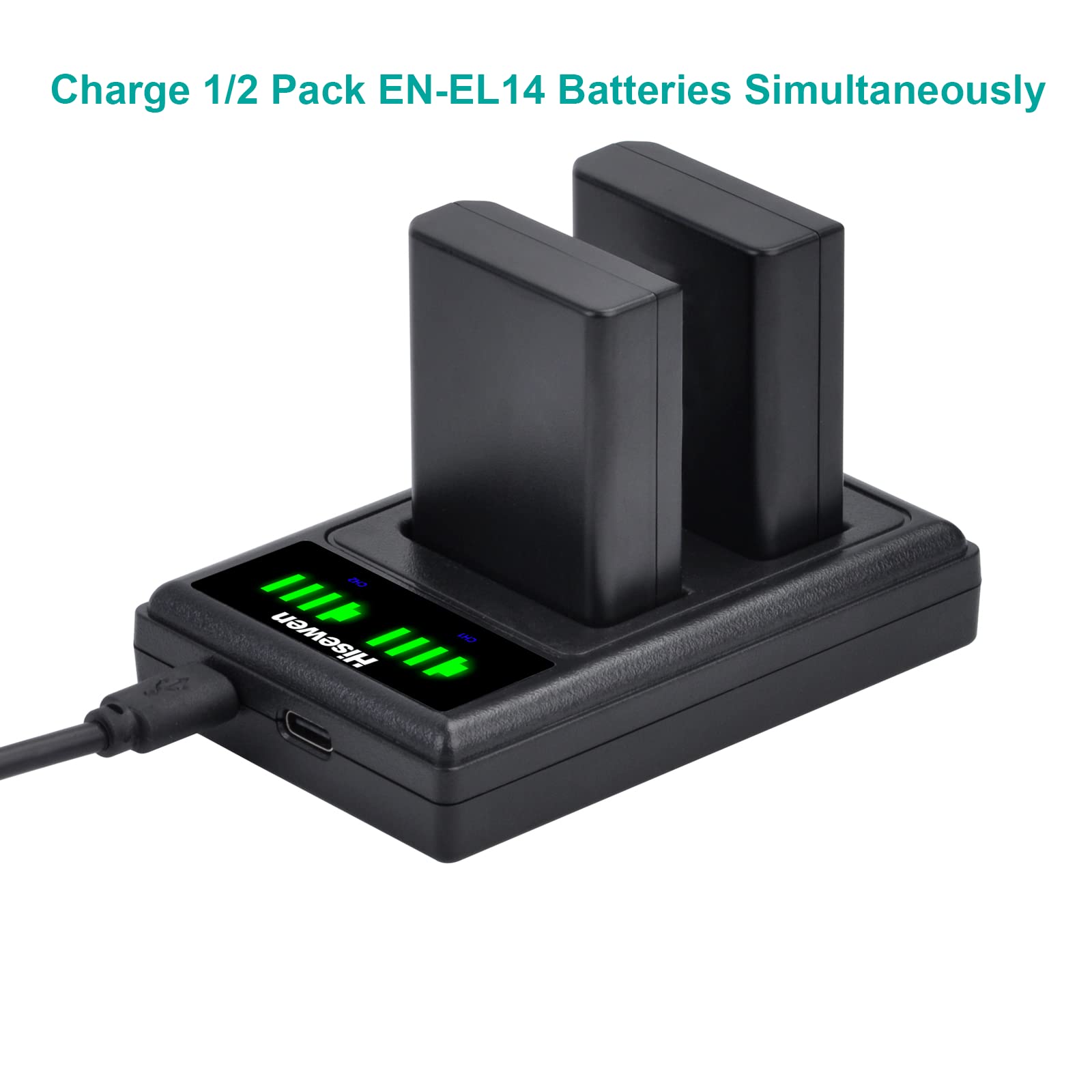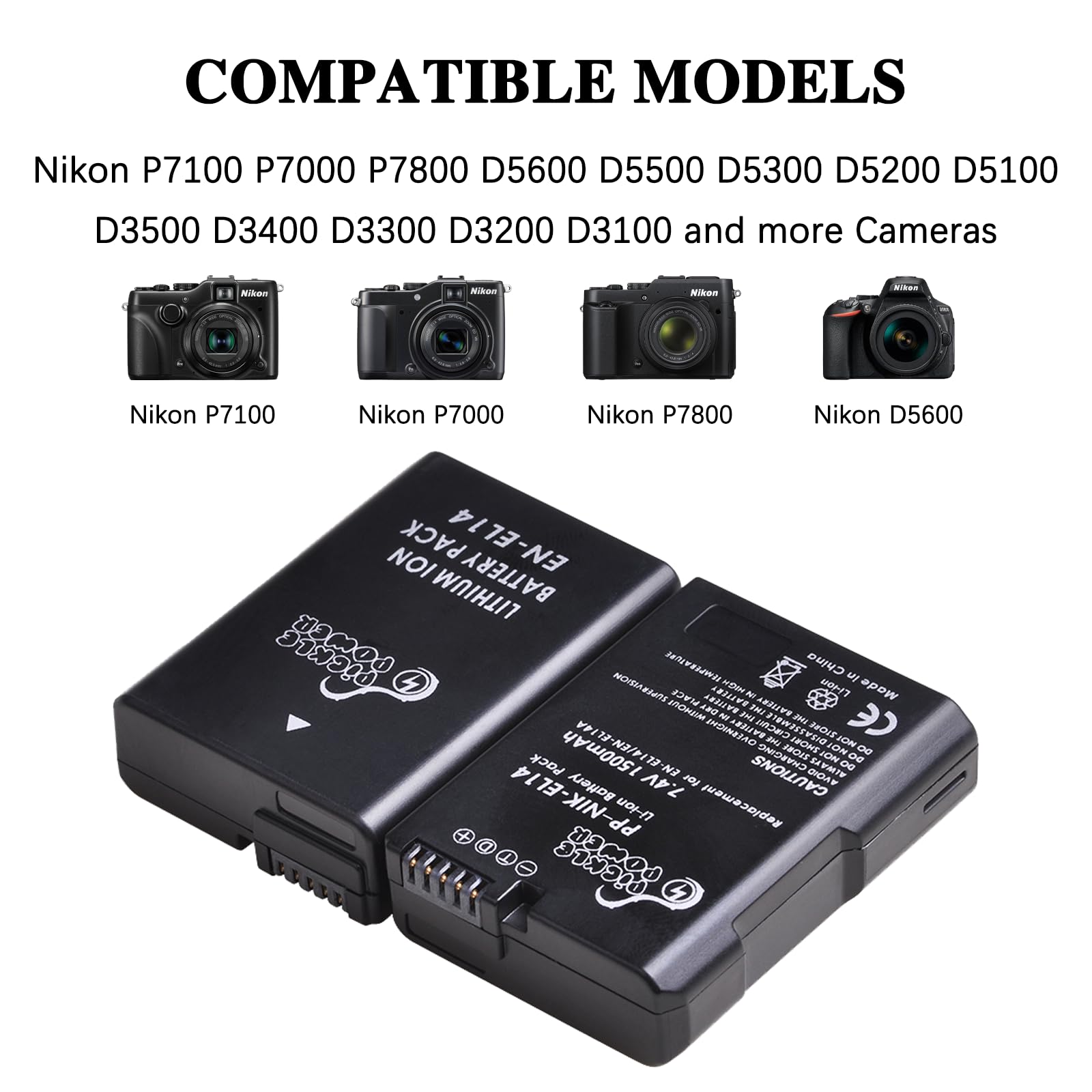Accessoire Nikon D3300 D5300 ENEGON EN-EL14 Chargeur USB LED Pour Nikon EN-EL14, En EL14a, D3100 D3200 D3300 D3400 D5300 D5500 D5600 D500 D3S DF, Coolpix P7000 P7100 P7700 7800. EN-EL14 DSLR Appareil Photo Chargeur Nikon EN-EL14 1x Battery-Batterie 1100mAh pour appareil photo Nikon EN-EL14 EN-EL14a... Chargeur En El 14 Subtel, Batterie Pour Caméra, Compatible Avec Nikon En-EL2, Coolpix SQ, 2500, 3500, 9904 (3.7V, 1050mAh Nikon D3200 Protection de Sécurité: Protection intégrée en circuit multiple (surcharge, court-circuit, haute température et protection contre les surtensions) et une construction résistante au feu Modèles Applicables: Piles de rechange entièrement compatibles pour Nikon EN-EL14, 100% compatible with D5600, D5100, D5200, D5300, D5500, D3100, D3200... Compact, il se glisse facilement dans un sac ou une poche pour vos photos en extérieur Modèles Applicables: Piles de rechange entièrement compatibles pour Nikon EN-EL14, 100% compatible with D5600, D5100, D5200, D5300, D5500, D3100, D3200, D3300, D3400, D3500, Coolpix P7000, P7100, P7200, P7700, P7800 e voyant LED jaune reste allumé pendant la charge et s'éteint lorsque la batterie est complètement chargée Couleur: noir Tension de sortie: 8., 4V 0., 9A Tension d'entrée: 100-200V 50-60Hz Compatibilité des modèles d’appareil photo pour Nikon COOLPIX P7700, Nikon COOLPIX P7800, Nikon D5100, Nikon D3100, Nikon D5500, Nikon D5200, Nikon COOLPIX P7100, Nikon D3300, Nikon COOLPIX P7000, Nikon D5300, Nikon D3200, Nikon D3500, Nikon D3400, Nikon D5600Nikon COOLPIX P7700, Nikon COOLPIX P7800, Nikon D5100, Nikon D3100, Nikon D5500, Nikon D5200, Nikon COOLPIX P7100, Nikon D3300