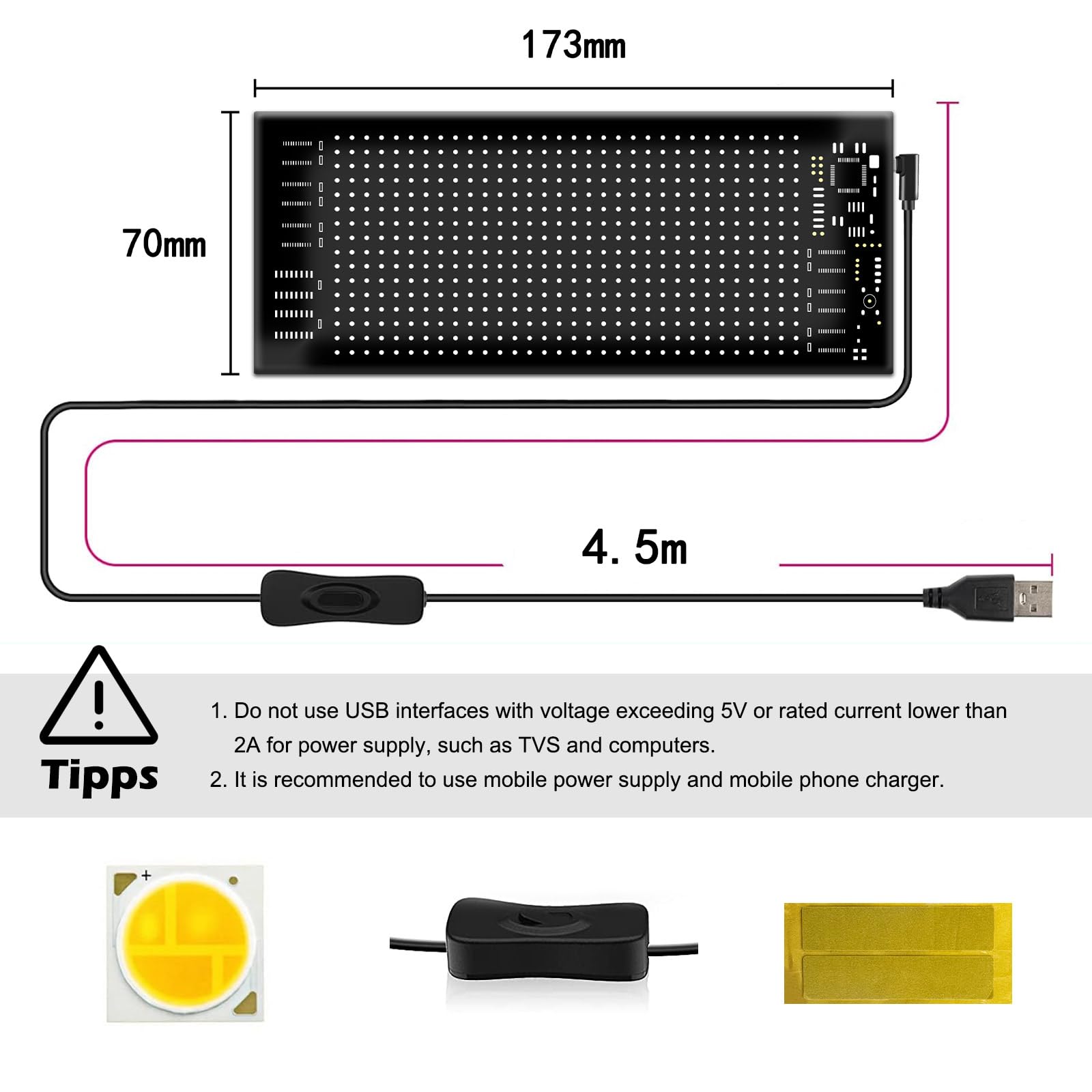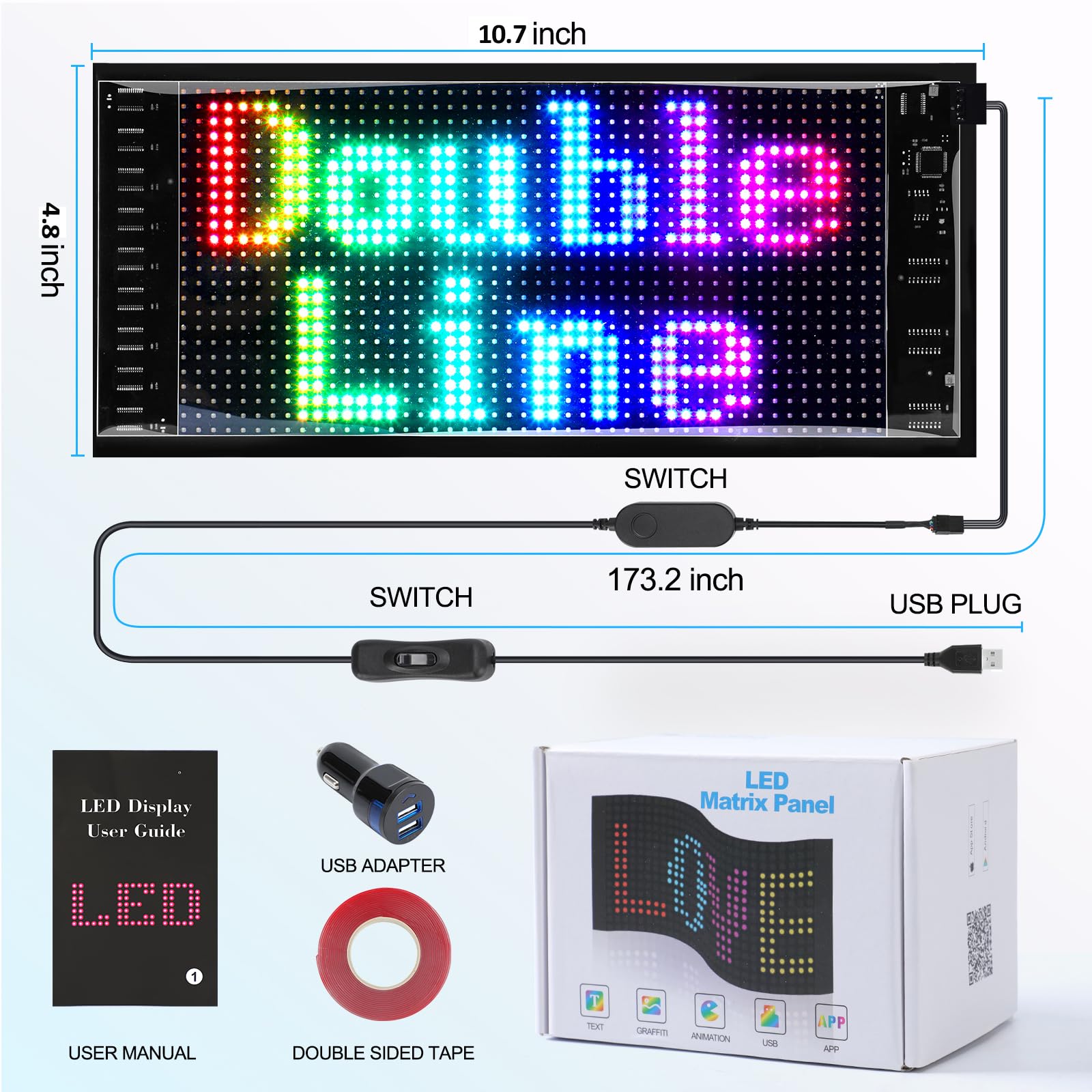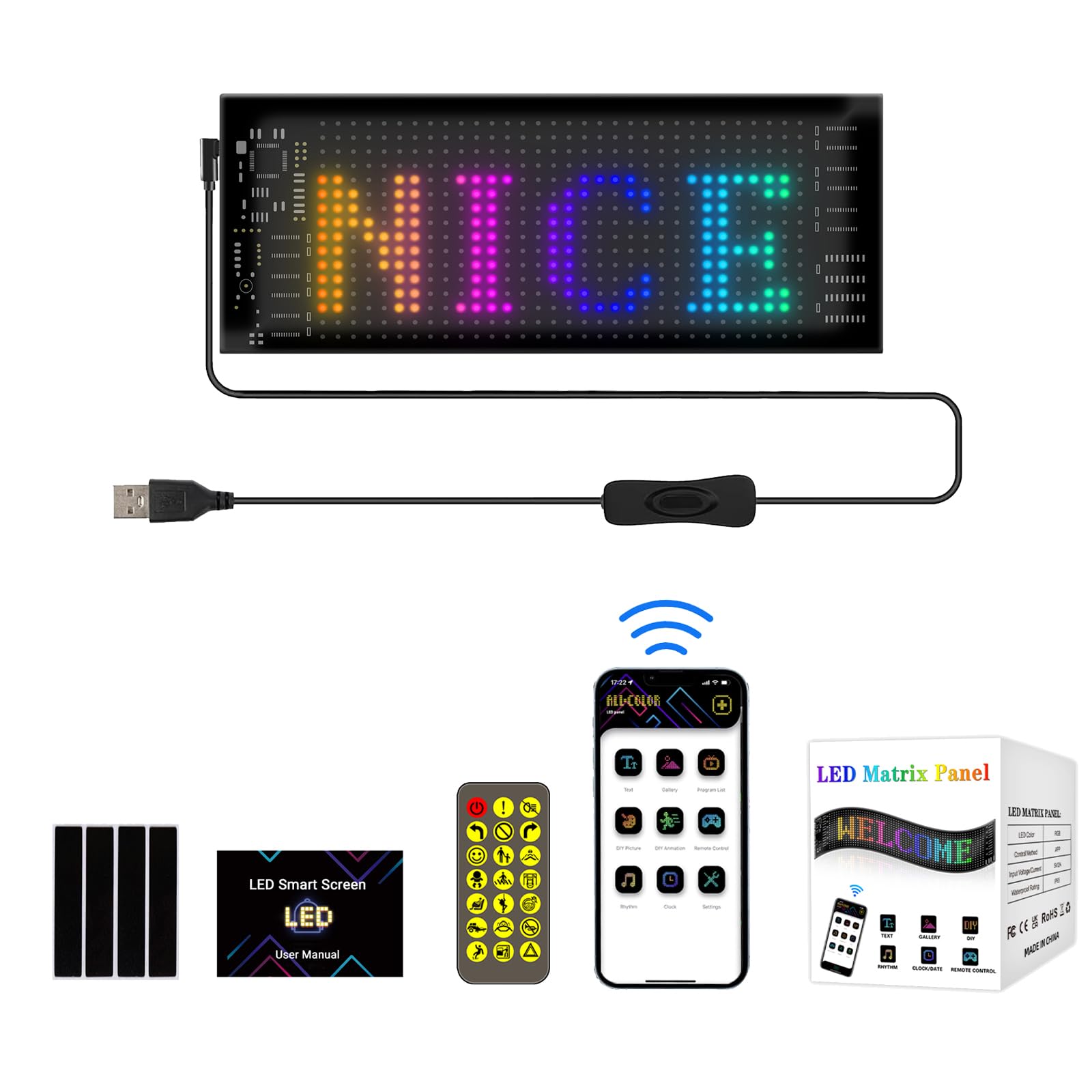 Contenu : 1 tableau d'affichage LED programmable. écran LED Flexible IP65 Hersance Panneau LED USB Numérique Polyvalent, écran LED Flexible Programmable 12 X 47, Panneau Numérique Portable Bluetooth APP Pour Affichage D'animation De Texte Graffiti Tableau Affichage LED Bluetooth Affichage LED programmable et polyvalent : non seulement pour les voitures, nos yeux LED pour voitures et nos écrans LED flexibles peuvent améliorer n'importe quel environnement. En raison des effets de l'éclairage pendant la prise de vue et des différents réglages de l'écran, les couleurs du produit sur l'image peuvent différer légèrement de la couleur du produit livré. Contrôle intelligent de l'application : le tableau d'affichage LED flexible programmable est contrôlé via une connexion Bluetooth avec une application et prend en charge la connexion simultanée avec plusieurs écrans LED, ce qui rend votre entreprise encore plus accrocheuse. Tableau d'affichage LED programmable, idéal pour une utilisation dans les bars, les fêtes ou les événements, et donne une touche dynamique et vivante à n'importe quel endroit où ils sont installés. Panneau D'affichage LED Flexible CHIWIN - Affichage Programmable 7 X 17 3 Cm Signal De Rouleau Rvb Controle Par Application Etanche Pour Voiture Fete Bar Publicite Interieur Ou Exterieur Largement utilisé dans les voitures, les magasins, les bars, les réceptions d'hôtel, les cinémas, les hôtels, la maison et les décorations de Noël ou de mariage. 1 câble USB de 4,5 m., 1 télécommande., 1 colle. Mode d'alimentation : USB. Tableau d'affichage LED programmable - Sans fil Bluetooth - Plaque nominative rechargeable Tableau d'affichage LED programmable - Sans fil Bluetooth - Rechargeable - Pour fête, bar, hôtel, restaurant Divoo Pixoo-ax Cadre Photo nuérique Polyvalent, Affichage LED prograable de Pixel Art 32 X... VEVOR Enseigne Lumineuse LED Programmable Flexible, Panneau d’Affichage Défilant Couleur... Conception d'écran flexible, peut être plié à volonté pour s'adapter à différents scénarios. Caractéristiques : Nom du produit : tableau d'affichage LED programmable Spécifications du produit : 70 x 173 mm Couleur des perles de lampe : RVB. Conseils : Les mesures étant prises à la main, les tailles indiquées peuvent varier de 1 à 2 mm. Tableau d'affichage LED 17,3 x 7 cm programmable - Police LED programmable - Avec application et télécommande - Yeux LED RVB pour voiture, magasin, bar, graffiti, publicité, application intelligente Bluetooth USB Plaque signalétique LED Bluetooth améliorée sans fil Bluetooth - Rechargeable - Pour fête, bar, hôtel, restaurant Description: Vous devez télécharger l'application, vous connecter à l'écran LED via Bluetooth, compatible avec iOS et Android et prendre en charge la connexion simultanée de plusieurs voyants LED.