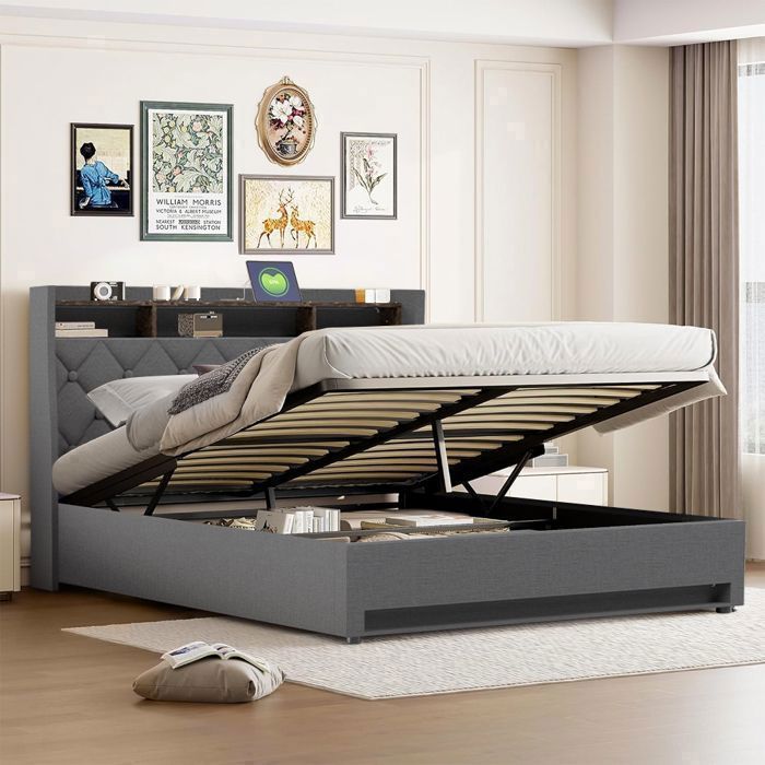 Distance entre la tête de lit : 28 cm. Lit 160 x 200 LED : ce lit rembourré 160 x 200 cm dispose d'une bande lumineuse LED qui crée une atmosphère chaleureuse qui contribue à la détente. Avec une... 【Tête de lit avec compartiment de rangement et fonction de charge USB】 : la tête de lit est non seulement rembourrée en douceur, mais également équipée d'une prise de courant intégrée et d'un compartiment de rangement qui dispose à la fois d'un port USB intégré et d'un port de type C, ce qui vous permet de charger votre téléphone portable et votre tablette avant de vous coucher. Dimensions (L x l x h) : 213 x 149/169 x 110 cm. Lit Moderne éclairage Intégré Aneutr Lit 160x200 Avec Sommier LED Et USB, Type-C, Lit Double Avec 4 Tiroirs, Capitonné Avec Tête De Lit, Lit 2 Personnes Avec Sommier à Lattes Pour Adultes, Adolescents, Lin Lit Velours Beige Sommier à Lattes 300kg Lit 160 x 200 LED : ce lit rembourré 160 x 200 cm dispose d'une bande lumineuse LED qui crée une atmosphère chaleureuse qui contribue à la détente. L'utilisation d'une décoration moderne en flanelle vous donne un fort sentiment de modernité et de confort. Matériau : bois + velours + métal Contenu de la livraison : tête de lit + sommier + tiroirs., Charge maximale : 300 kg. Construction confortable et robuste : le cadre de lit est équipé d'un sommier à lattes, le sommier à lattes est composé de lattes en bois élastiques, le cadre de lit peut supporter une charge allant jusqu'à 300 kg, ce qui assure une utilisation sûre et confortable. Ce lit avec espace de rangement est fabriqué dans un tissu en velours doux agréable au toucher. Le tissu non tissé noir sur le dessous rend votre rangement plus propre. Matelas adapté (sans matelas) : 140/160 x 200 cm. Vous recherchez un lit à la fois confortable et fonctionnel pour votre chambre à coucher ? Optez pour un lit 160x200 avec rangement intégré. Ce type de lit offre un espace de couchage spacieux tout en vous permettant de maximiser le rangement dans votre chambre Tête de lit épaisse et douce pour la peau remplie d'éponge douce. Lorsque vous déplacez le lit, veuillez le soulever au lieu de le poncer sur le sol. Lit rétro 160 * 200 cm,Lit rembourré avec éclairage LED sommier, Modern PU lit Deux Personnes hydraulique avec sommier à Lattes et Rangement,Lit de Rangement avec tête LED und 4 tiroirs