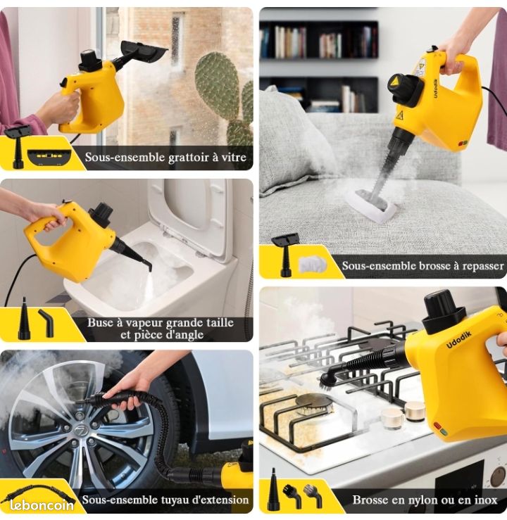 Par conséquent, n'utilisez pas l'appareil pour nettoyer des tapis, des rideaux ou d'autres objets qui ont tendance à absorber l'eau. Nettoyeur Vapeur Multifonction Udodik Nettoyeur Vapeur Portable Pour La Maison, Multi-usages Avec 10 Accessoires Pour Tapis, Rideaux, Canapés, Cuisine,salle De Bain Et Plus Encore (yellow Nettoyeur Vapeur Rapide 3 Minutes Il est universel et peut nettoyer tous les interstices, les coins, les angles et même différentes surfaces/matériaux difficiles d'accès : évier de cuisine, plan de travail, toilettes, barbecue, rideaux de douche, sol, jouets pour enfants, matelas pour animaux de compagnie, canapé, voiture et vêtements. Comprend un verrou de sécurité sur la poignée et un capuchon de sécurité pour plus de tranquillité d'esprit pour votre sécurité. Gagnez du temps et des efforts : le vapeur portable n'a besoin que de chauffer de l'eau pour fonctionner, sans outils compliqués ni longues opérations. 【Vapeur puissante】 : le nettoyage à la vapeur chauffe rapidement en 3 minutes et émet une puissante vapeur chaude sous pression de 221 °C. meilleur Nettoyeur Vapeur 2024 - Comparatif pour bien choisir Note : La température d'essai est de 35°C. Rendez votre maison comme neuve. La vapeur d'eau libérée lors de la première utilisation peut contenir quelques gouttelettes d'eau. Il peut être utilisé en toute confiance pour les enfants et les animaux domestiques. Puissance : 1050 W, capacité du réservoir d'eau de 350 ml (capacité d'eau de 250 ml est recommandée pour laisser un peu de place pour une utilisation normale), temps de fonctionnement continu de 10 minutes ou plus. Jamais ouvert toujours dans sa boîte Beaucoup accessoires tout neu f Vapeur surchauffée puissante] : le nettoyeur à vapeur Udodik chauffe pour produire de la vapeur à haute température de 221°F (105°C) pour nettoyer la saleté, la poussière, la graisse et plus encore. Rendez votre maison comme neuve Udodik Nettoyeur vapeur portable pour la maison - Nettoyeur vapeur multifonction avec 10 accessoires pour tapis, rideaux, canapés, cuisine, salle de bain et plus encore (blanc Technologie de stérilisation à haute température, pas de nettoyage chimique Si le temps est trop froid, la distance sera réduite. Sans produits chimiques et sans danger : vapeur manuelle 100 % sans produits chimiques, sans vapeurs nocives ni résidus. Description du produit Fonctionnement du Udodik nettoyeur vapeur