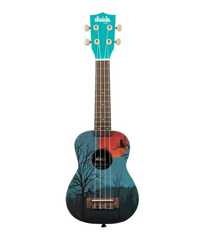 Kala Ukadelic Moonrise Soprano Ukulele Ukulele Détails de l'article : Kala Wood Graphic Top Ukadelic - Taille de la caisse soprano - Diapason de 343 mm (13 1/2) - Longueur totale : 524 mm - Dessus en peuplier - Éclisses et fond en bois de peuplier - 12 frettes - Touche en palissandre - Selle et chevalet en plastique - Surface satinée Moonrise Graphic Top Aquila Super Nylgut Cordes - Sac de transport inclus Sac de transport inclus Ukulélé Soprano Kala Ukadelic Kala Moonrise Ukadelic Soprano - Multicolor Ukulele Ukulele Soprano Kala À la lueur chaude de la lune levante, de petits oiseaux orange reposent dans les branches des arbres froides, tandis qu'un corbeau est tombé inaperçu sur la branche la plus bas. Ukelele soprano Kala Ukadelic Graphic Top Luna - Musical Fusté Dans une nuit d'hiver claire à la lumière de la lune rouge sang, la chouette monopolite est montée sur une branche et fixe sur les montagnes qui disparaissent à distance. Ukelele soprano Kala Ukadelic Graphic Top Luna - Musical Fusté
