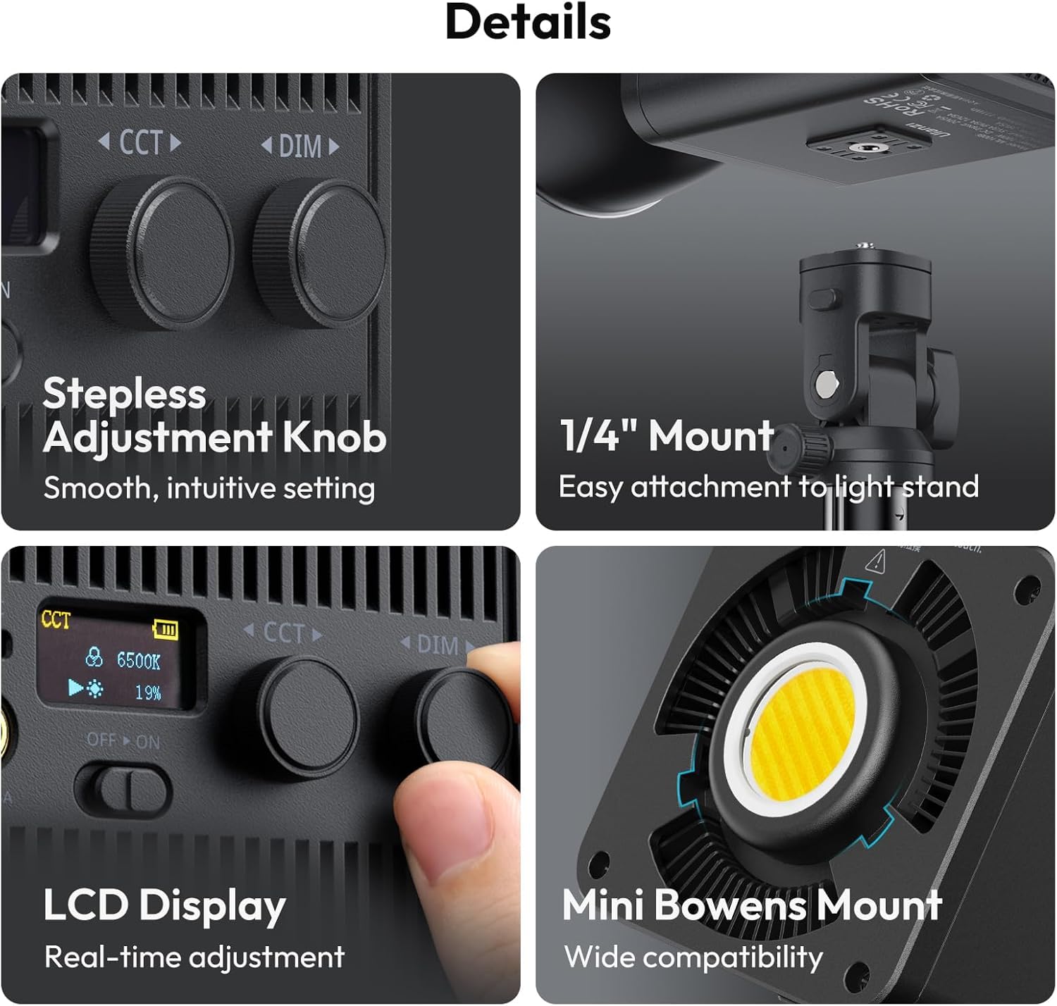 éclairage Studio Portable Ulanzi Ulanzi VIJIM VL81 Mini Lampe LED Bicolore Pour Smartphone Et Appareil Photo Avec Température De Couleur Réglable 3200 K-5500 K Et Batterie 3000 MAh Video Tripod Lape de téléphone portable pour selfies et création de contenu – Lape... Ulanzi VL- 49 Lampe Vidéo LED 2000mAH de 3 Supports Chaussure Froide 【Fonctionnement sans fil avec batterie intégrée】 La batterie au lithium de 88,8 Wh offre une liberté sans fil avec jusqu'à 7 heures de fonctionnement à luminosité minimale et 46 minutes à luminosité maximale. Lumiere Photo, Ulanzi Vl49 Led Photo Rgb Avec Batterie Intégrée Charge... Pour charger pendant l'utilisation, il est recommandé d'utiliser un chargeur avec une PD de 100 W ou plus. 【Conception portable et polyvalente】 Léger et compact pour une mobilité optimale, idéal pour toutes les situations de prise de vue. 【Luminosité haute performance 100 W】 Les puissantes ampoules COB offrent une luminosité élevée et une lumière douce et uniforme pour un éclairage d'ambiance dans les environnements sombres. 【Gradation continue et installation facile】 Bouton de réglage fluide et continu pour un contrôle précis et support 1/4 pouce pour une fixation sans effort aux pieds d'éclairage.