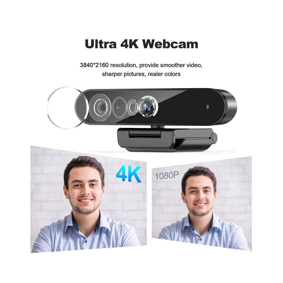 【Ultra HD 4K Vidéo Webcam】 Dotée d'un capteur CMOS avec une résolution UHD jusqu'à 3840 x 2160 à 30 ips, appareil Webcam 4k spécialement conçu pour les appels vidéo de professionnelle, enregistrement, conférences, jeux. Nolansend Webca 4K pour PC, zoo autoatique, avec télécoande, cache La webcam peut être installée et utilisée directement. Forte Compatibilité Webcam compatible avec Facebook, Yahoo, Skype, OBS, You Tube, Twitter, Twitch, etc. 【Plug-and-Play et vision de 105 degrés】La webcam peut être installée et utilisée directement, aucun pilote requis. Qu'est-ce que la webcam 4K Lommegy? Cette webcam 4K UHD avec objectif en verre Full HD fournit des images nettes et des vidéos claires comme du cristal à 30 images par seconde, résolution 3840x2160 Résolution du capteur 8MP capture des détails nets et restaurer des scènes réelles, idéal pour les webinaires, les vidéoconférences, la diffusion en direct, les cours en ligne, les jeux, Skype et plus encore. Le grand angle de 105°couvre plus de positions. 29.99€ Lommegy Webcam 4K, HD Ultra 4K Webcam pour PC avec Microphone, Micro Anti-Bruit, Correction Automatique Lumière HD, Grand Angle Caméra pour Streaming... Description du produit UHD 4K Webcam Crystal Clear Image vous Donne un Look Professionnel dans Différentes scènes La webcam est adoptée avec une haute définition 3840*2160, peut produire des images claires de haute qualité. Compatible avec Windows 6 / 7 / 8 / 10, ou supérieur, ainsi que la plupart des programmes de chat vidéo et d'enregistrement tels que Skype, zoom, facetime, etc. AVERTISSEMENT : **Il n'est pas recommandé d'utiliser la webcam dans un environnement complètement sombre, car cela affectera la qualité de l'image. Même dans un environnement bruyant, vous pouvez capturer facilement les sons que vous voulez. Même dans un environnement bruyant, vous ne pouvez enregistrer que les sons que vous souhaitez. Webcam 4K Pour PC Portable Ordinateur Télétravail Lommegy Webcam 4K, HD Ultra 4K Webcam Pour PC Avec | FindTheDeal Webcam 1080p 60fps Miker Intégré Anti-Bruit Webcam d'ordinateur avec microphone peut capturer votre voix et filtrer automatiquement le bruit de fond, vous permettant de profiter d'une voix plus claire et d'une communication sans entrave. Vous pouvez facilement ajuster l'ange de la webcam pour bien l'adapter à votre ordinateur. Branchez simplement cette webcam USB sur votre ordinateur portable, votre ordinateur de bureau. **Pour profiter des vidéos et des images en résolution Ultra 4k de cette webcam, nous recommandons d'utiliser un logiciel d'enregistrement 4k professionnel et un écran qui prend en charge le 4K. Parfait pour Zoom, Skype, Facetime, Facebook, YouTube et tout autre logiciel d'appel vidéo populaire. Les microphones stéréo intégré permettent un enregistrement clair et naturel. Angle de vue horizontal ultra large de 105 ° pour une vision plus large. CARACTÉRISTIQUES : Nom du produit : UHD 4K Webcam Résolution : 4K (3840 X 2160) 30fps Capteur d'image : Capteur 1/2., 7 8MP Angle de vue : 105° ultra grand angle Type et longueur de la ligne : USB2., 0, 150 cm Plage de mise au point : Objectif 8MP, f= 3,6mm Type de pilote : Sans pilote (plug and play) **Si le microphone de la webcam ne fonctionne pas correctement, désactivez la caméra ou le microphone intégré du PC dans le Gestionnaire de périphériques, puis activez le microphone de la webcam. Ce qui vous permet de voir plus pendant les vidéoconférence, idéal pour les conversations télécommunications ou les conversations multi-personnelles. Idéal pour les appels vidéo, les cours en ligne, les jeux, le télétravail ou encore les enregistrements vidéo. Ultra HD 4K Vidéo Webcam : Capteur CMOS offrant une résolution UHD jusqu'à 3840 x 2160 à 30 ips. Plug-and-Play et vision de 105 degrés : Installation facile, compatible avec tous les appareils USB, grand angle de 105 Lommegy caméra PC des images vives avec une clarté exceptionnelle, un rendu des couleurs éclatant et des détails nets.